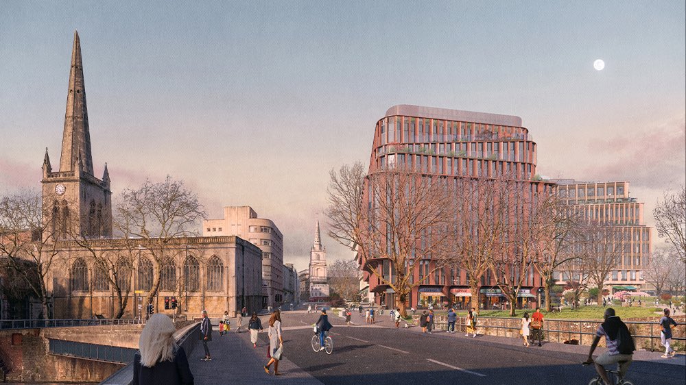 The proposed St Mary le Port development as seen from Bristol Bridge – image: MEPC