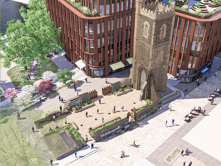 Developers propose “to provide a high-quality landscaped public space in and around the tower, to significantly improve its setting” – image: MEPC