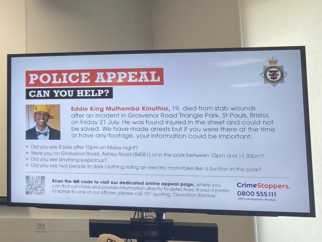 Avon & Somerset Police have held a press conference with the a mum of Eddie King Muthemba Kinuthia, who was fatally stabbed in St Paul’s – photo: Charlie Watts