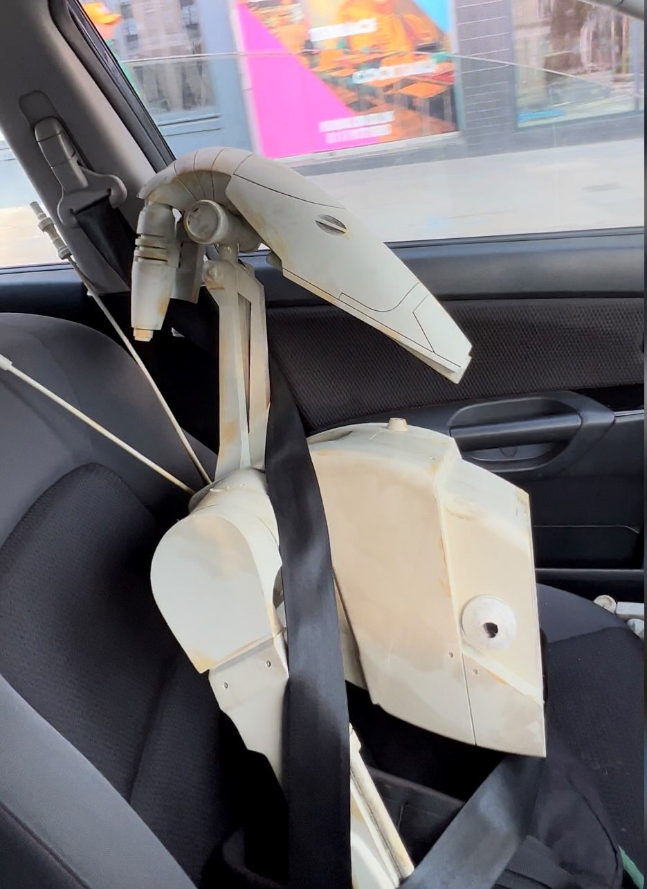 Roger the battle droid on his way back from the tip, with his seatbelt safely fastened – photo: Simon Francis Thomas