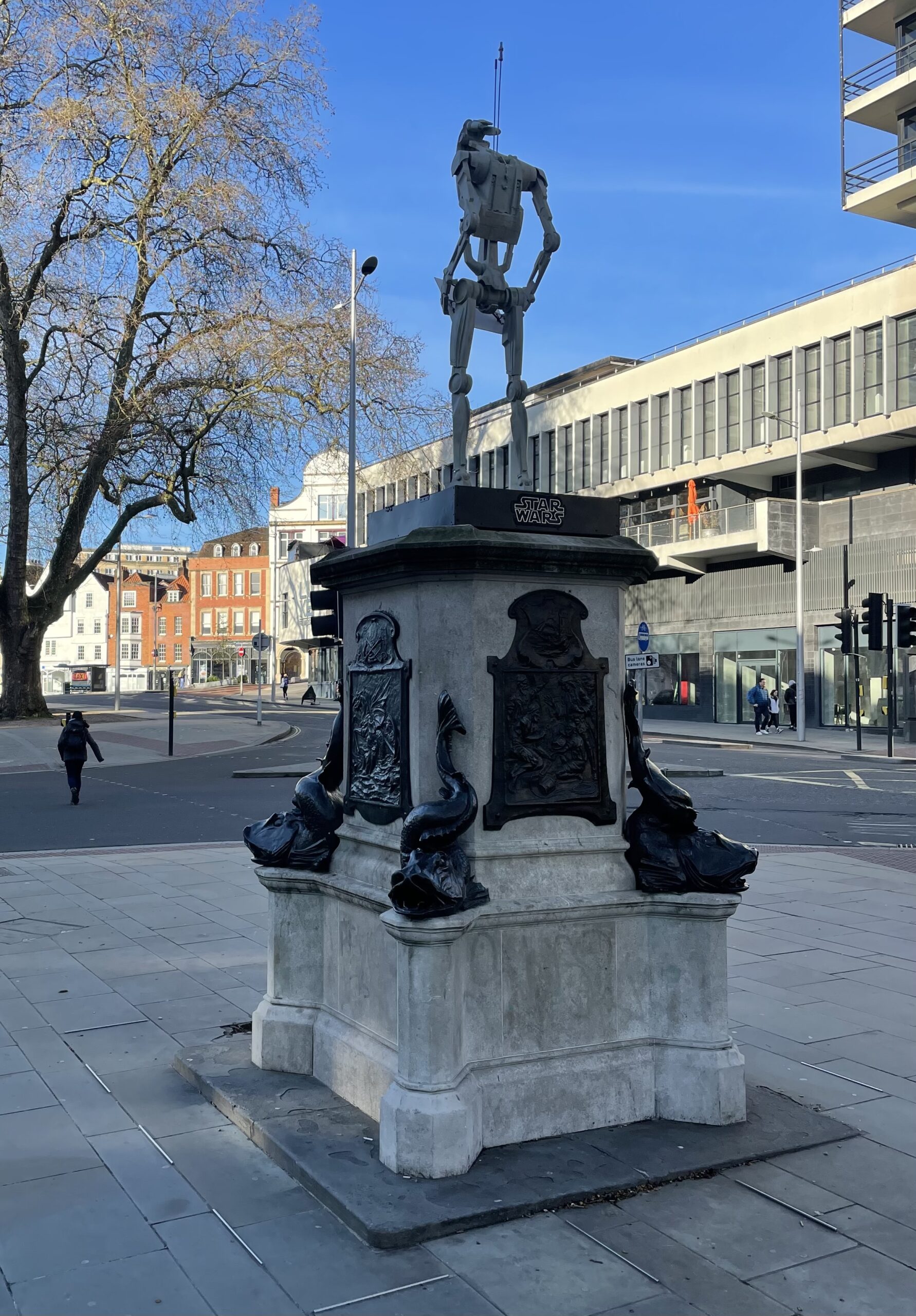 The droid was put on the empty plinth early on Friday morning – photo: Martin Booth