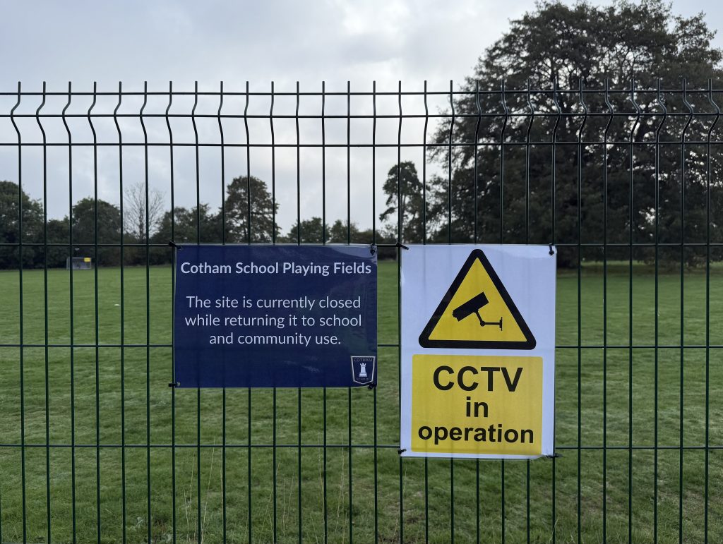 “The site is currently closed while returning it to school and community use” says a laminated Cotham School sign.