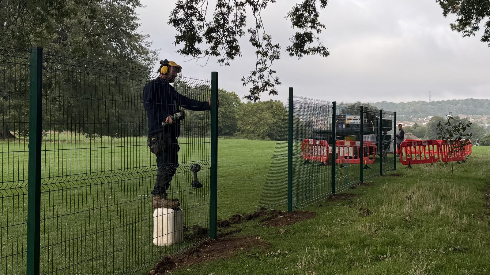 Workers began reinstalling the fence around Stoke Lodge on Tuesday – photo: Martin Booth