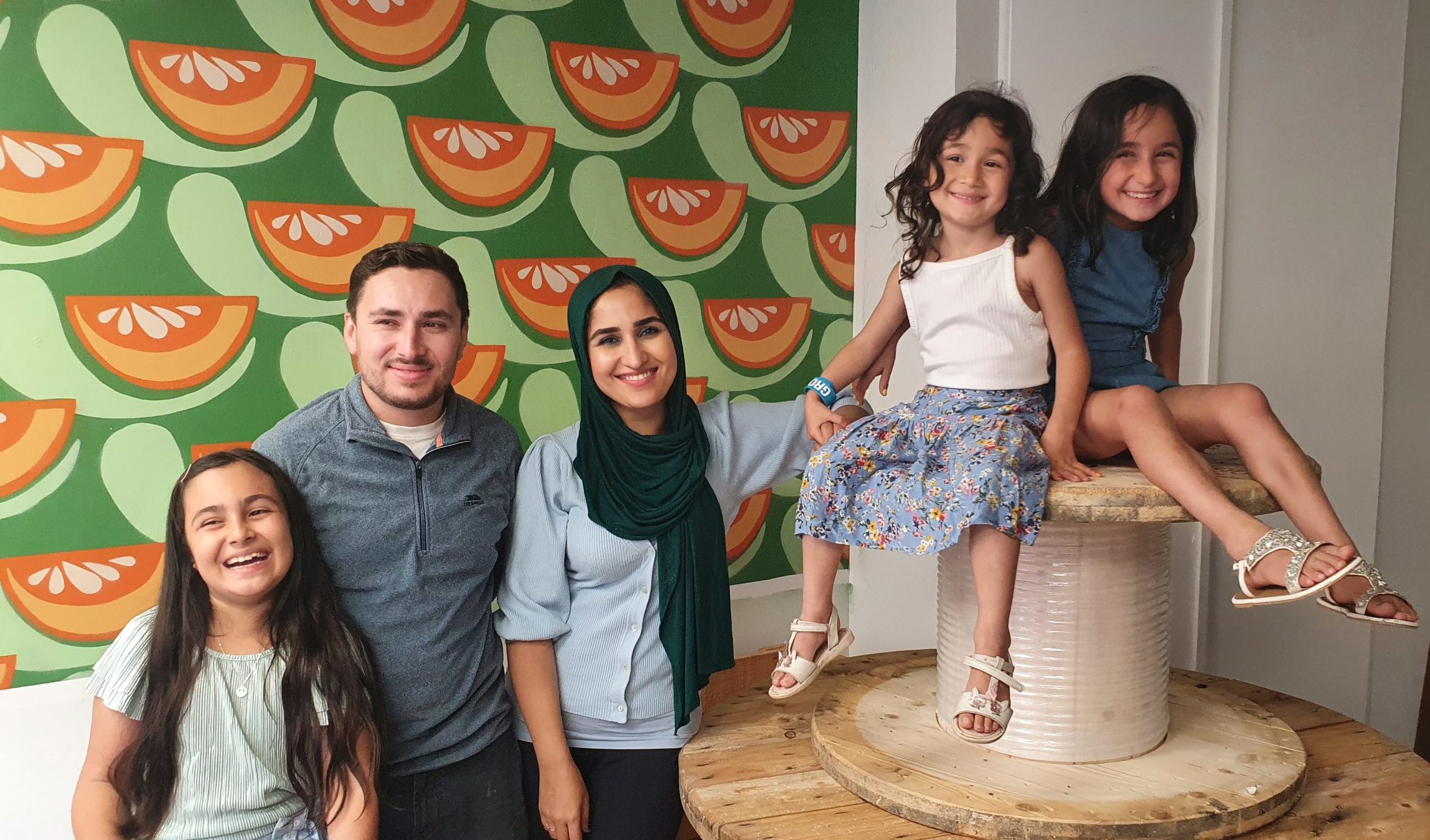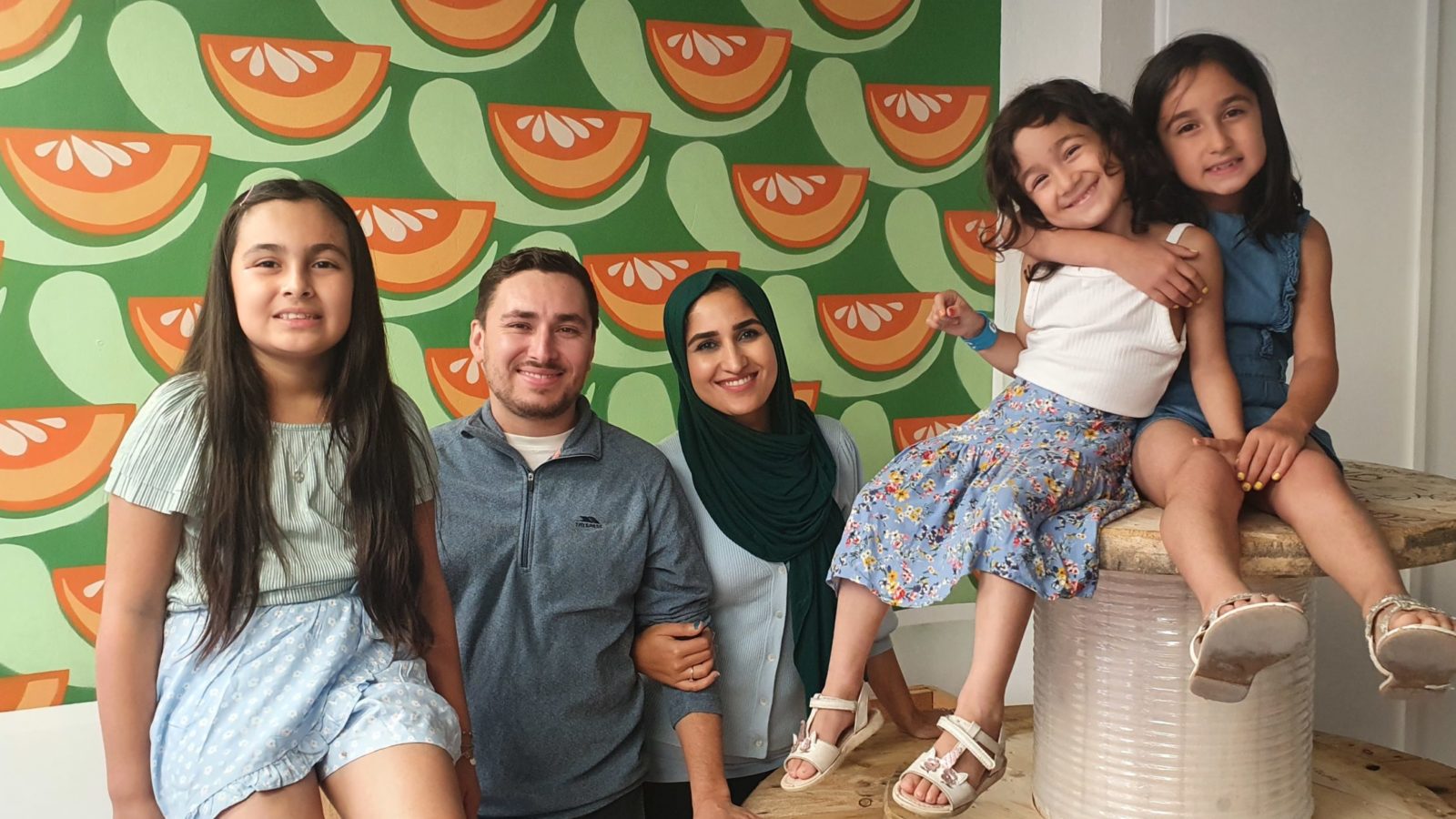 Tara Miran and John Aguirre with daughters Ashti, nine, Arianne, six, and Astera, four, in the Green Melon, which is opening soon