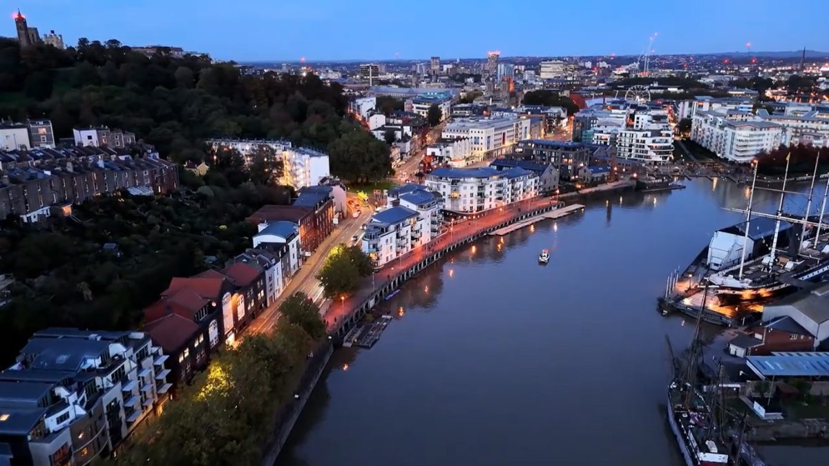 A bird’s eye view of Bristol’s Floating Harbour has been captured in a stunning new video.