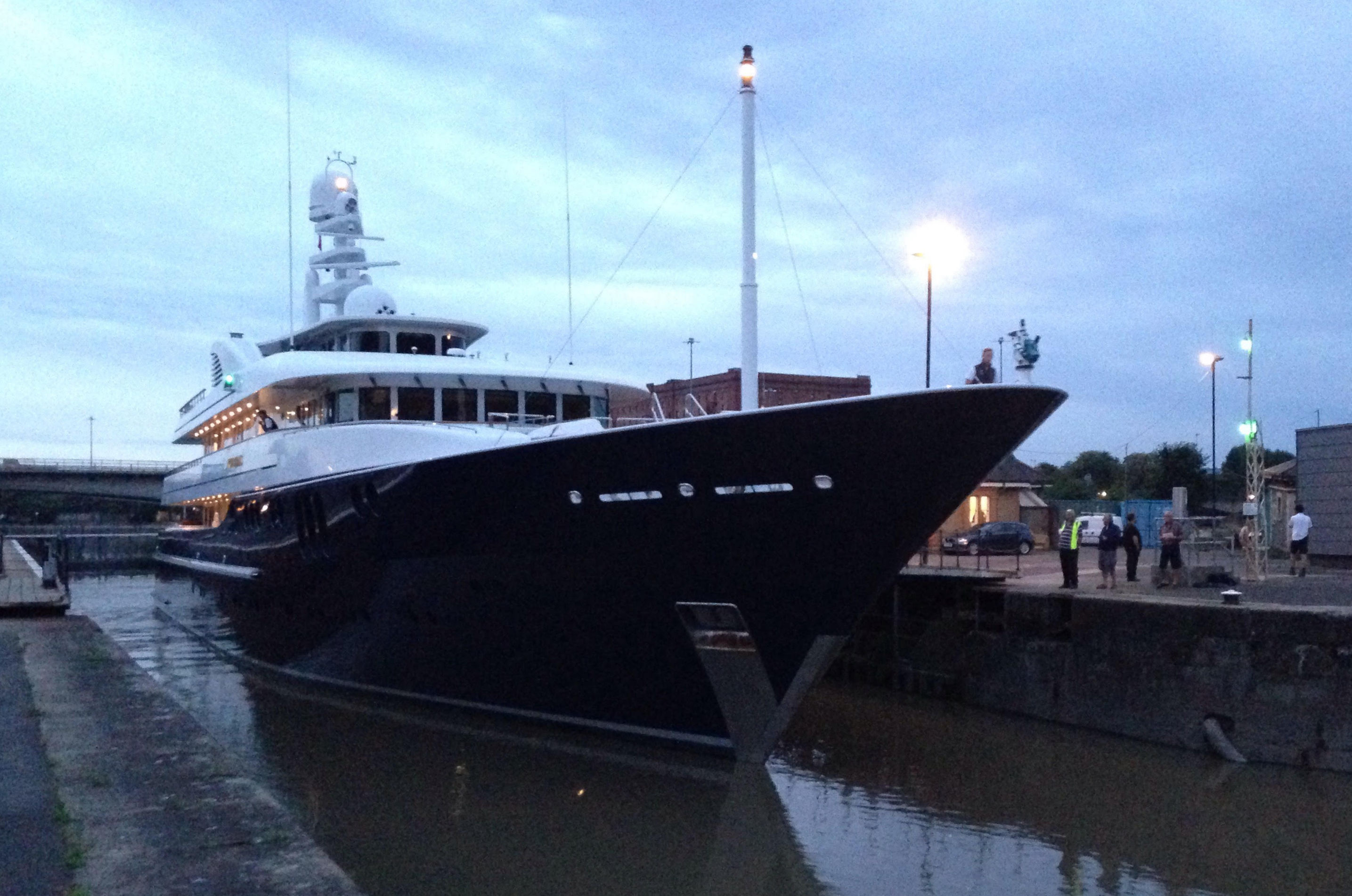 Drivers heading to work along Hotwell Road got out of their cars to take a closer look at the billionaire’s plaything, while Harbour Master staff opened bridges and lock gates to allow the boat to pass.