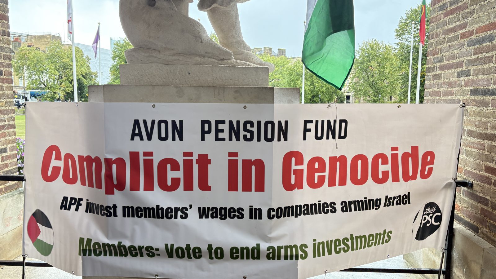 Pro-Palestine protestors first urged the Avon Pension Fund in December 2024 to divest from companies producing weapons being used by Israel in Gaza and companies profiting from illegal Israeli settlements in the West Bank.