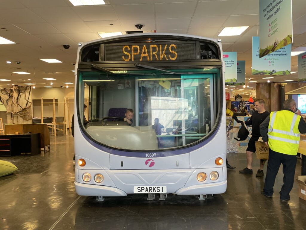 There is food and drink from Mila, preloved and reworked clothing from the Sustainable Fashion Week team, and even a bus to drive – close to a model of a tram built in 1906 where you could imagine what public transport in Bristol could have looked like.