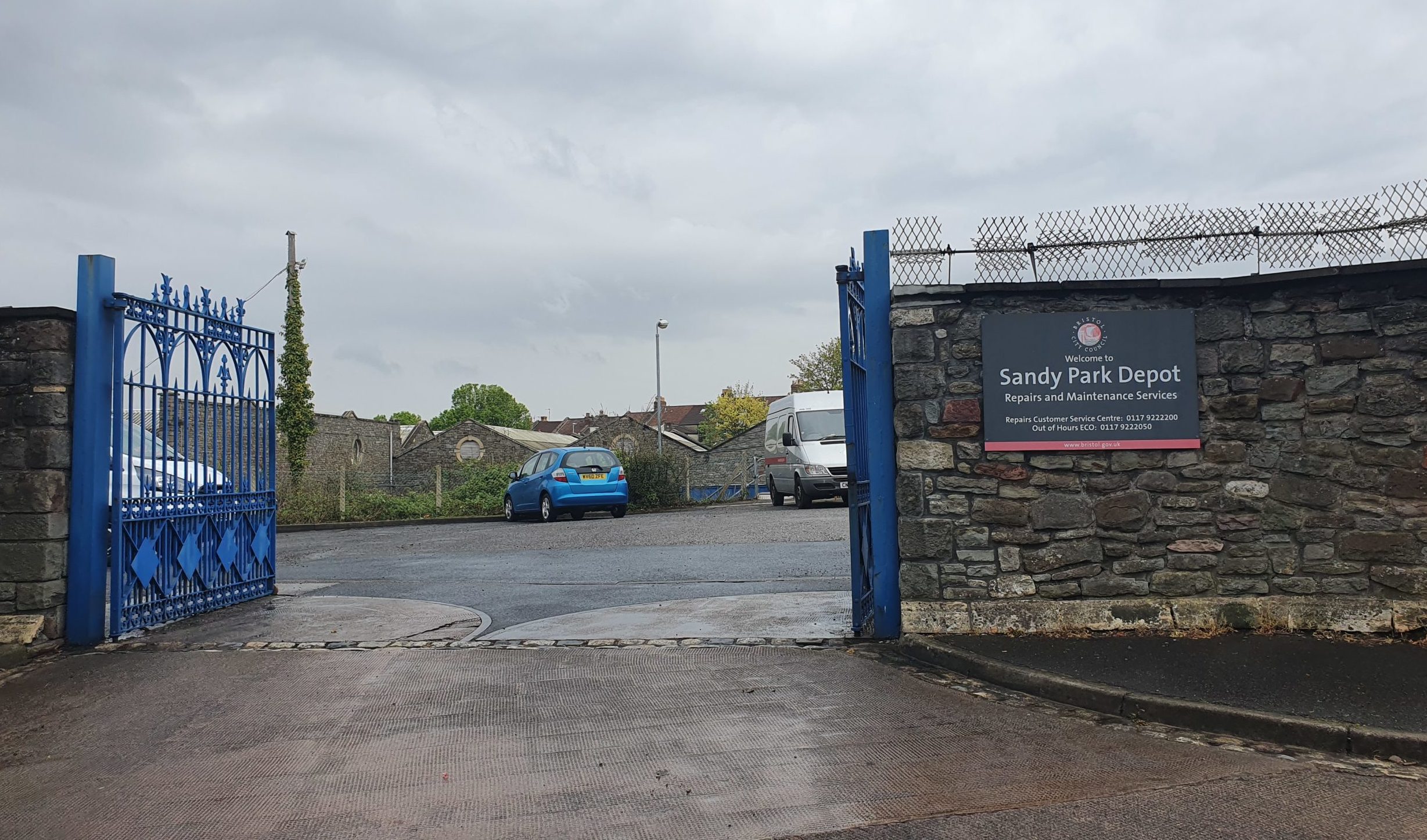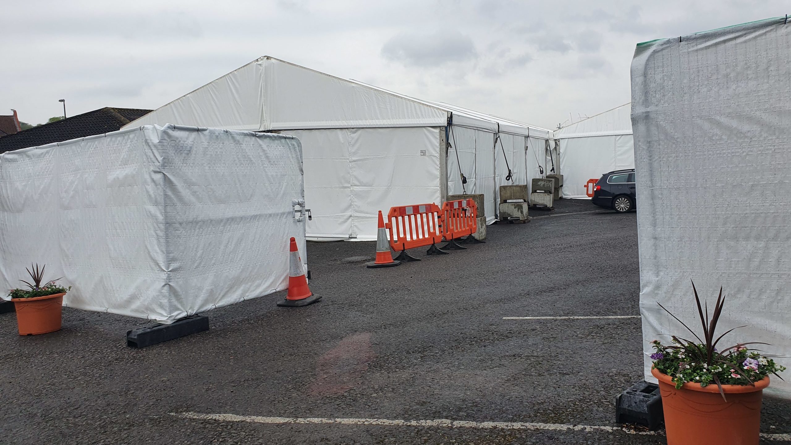 Potted plants mark the entrance to the facility that has been built in response to the coronavirus pandemic on a site off Sandy Park usually used as the council’s vehicle fleet servicing depot.