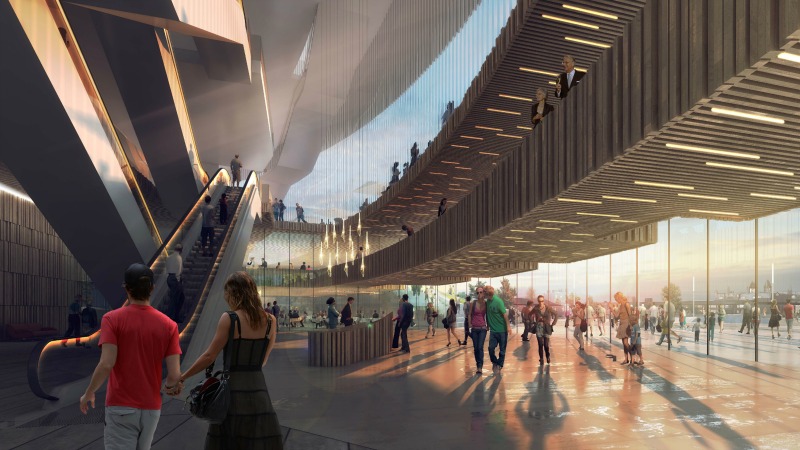 November 2014: Five shortlisted architects for the design were announced. The winner was Populous, whose design allowed the arena to convert quickly and easily for the layout required, with capacity ranging from 4,000 to 12,000.