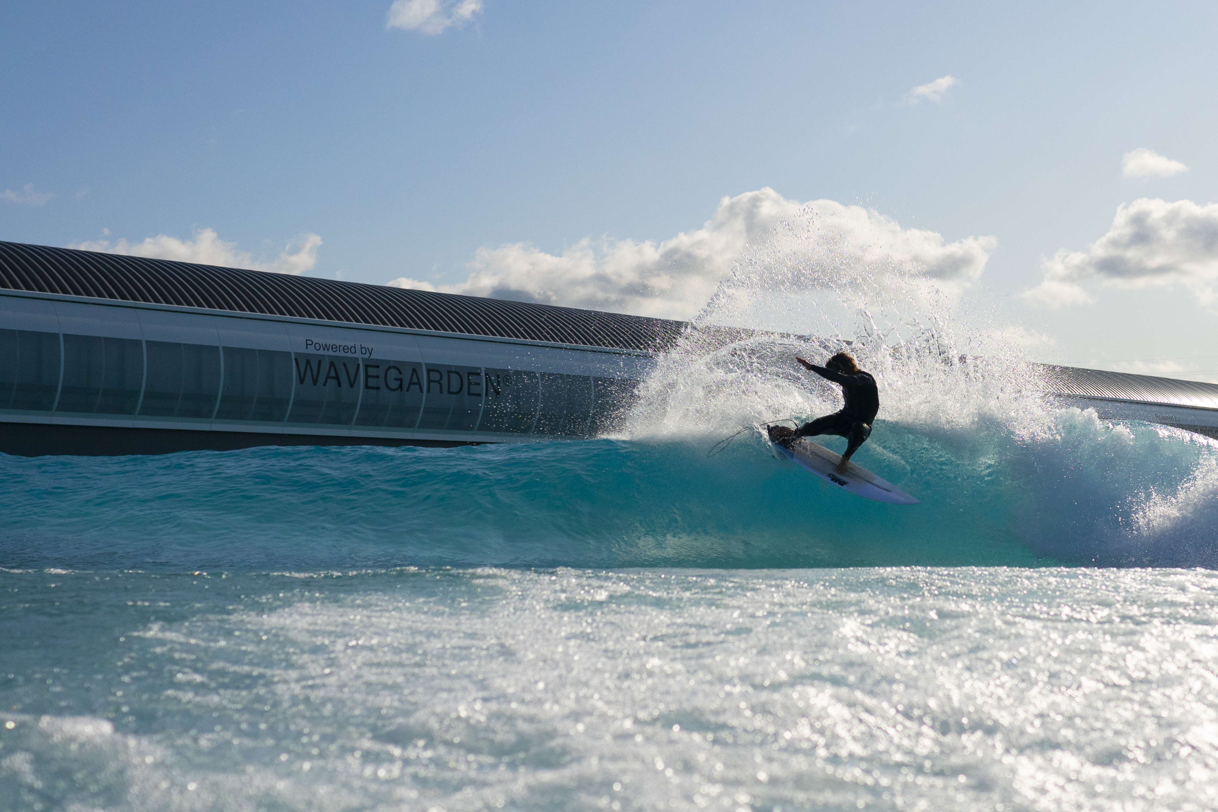 A long pier divides the vast swath of water, leading to a spaceship-like area that houses the Wave Garden’s cutting-edge technology that can generate up to 1,000 waves per hour, ranging from 1.7ft to 6.5ft in height.