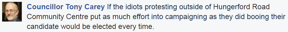 The protesters did not please local Tory councillor Tony Carey, who branded them “idiots” in a post on the Brislington Community Partnership Facebook page.