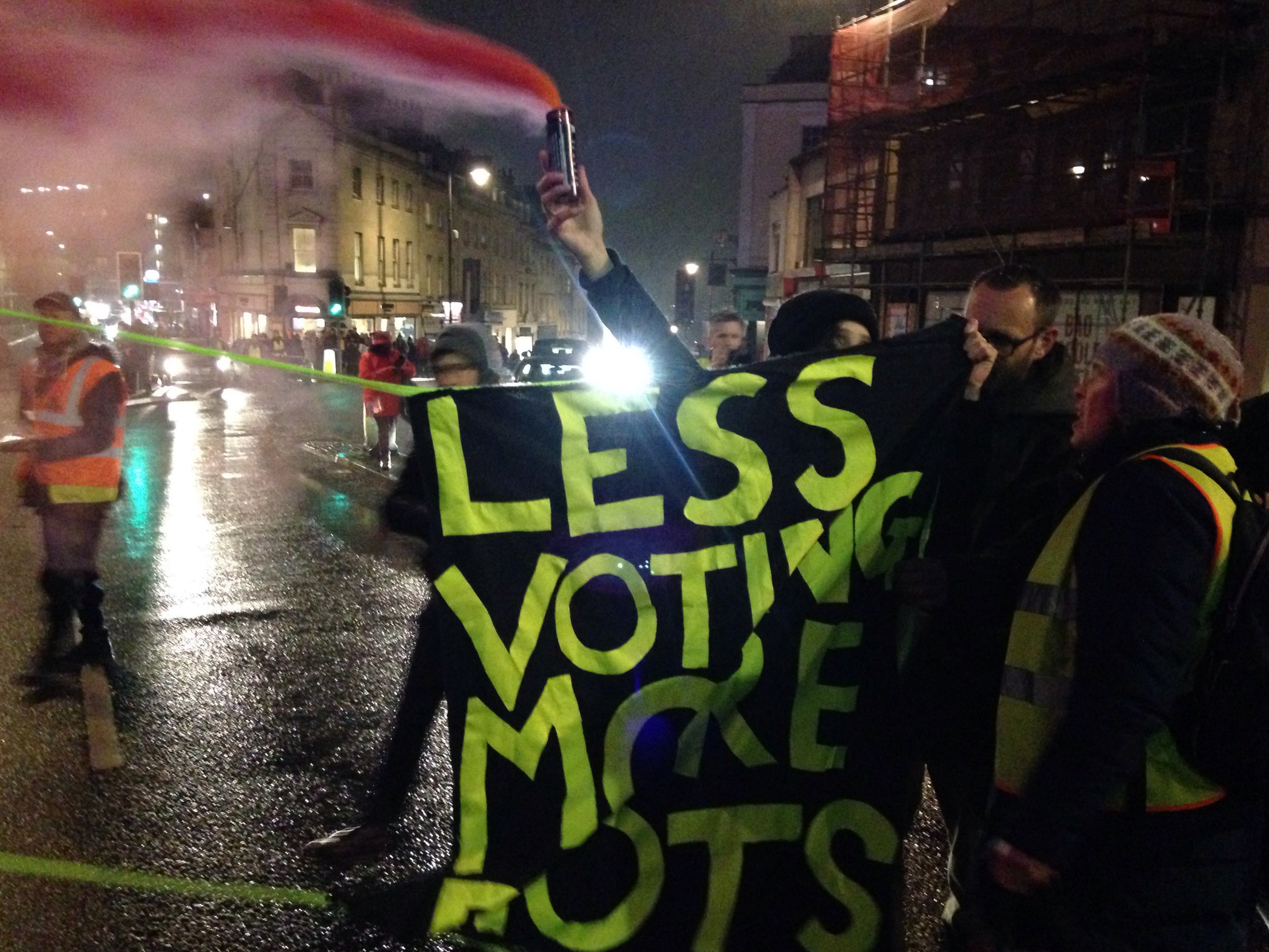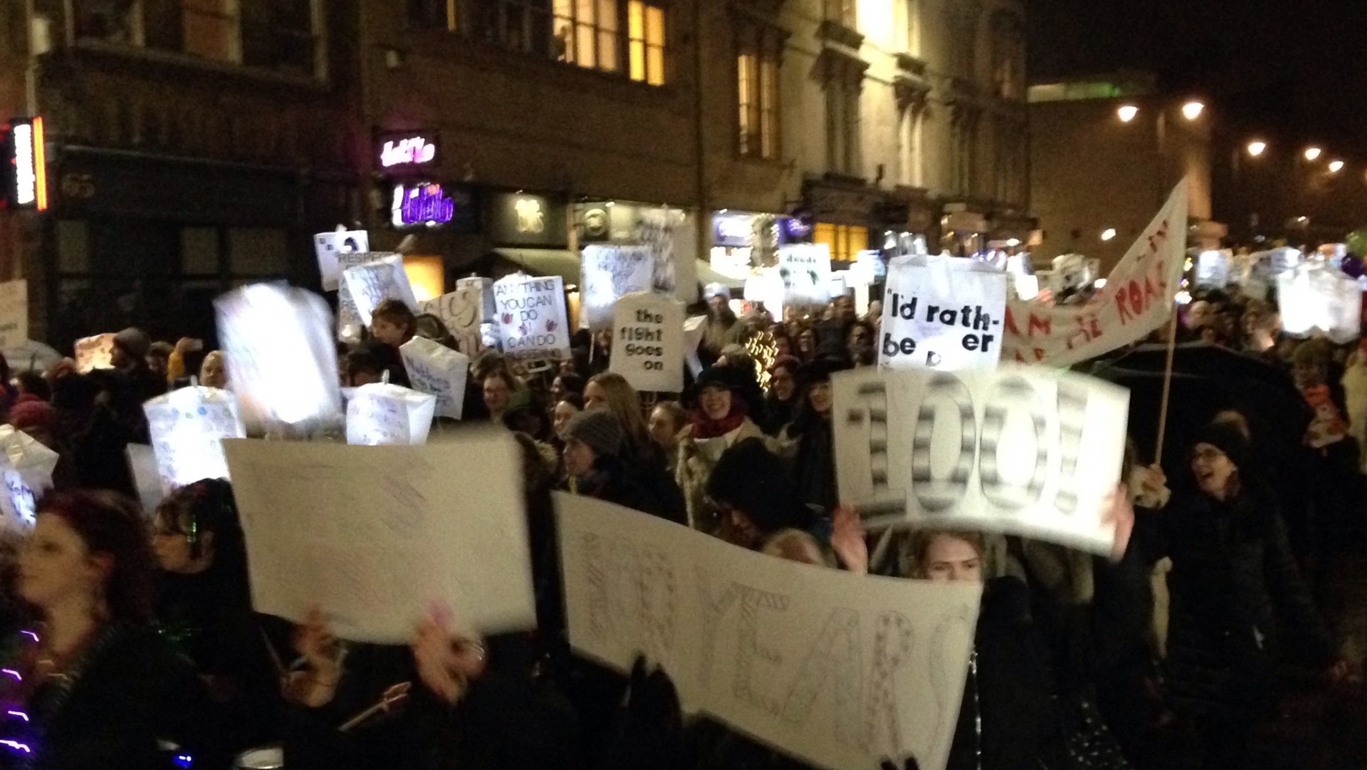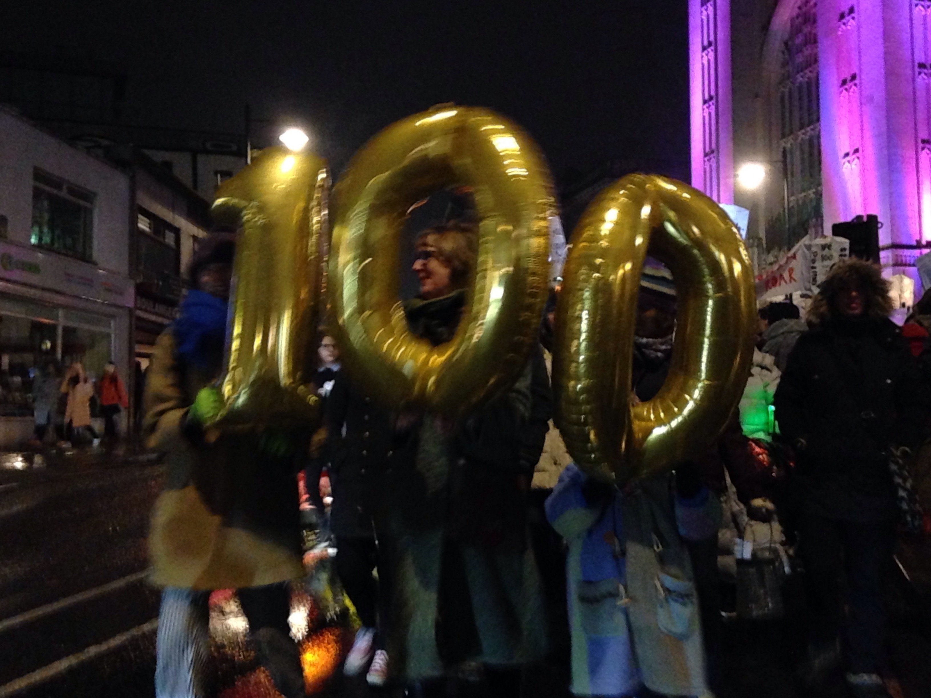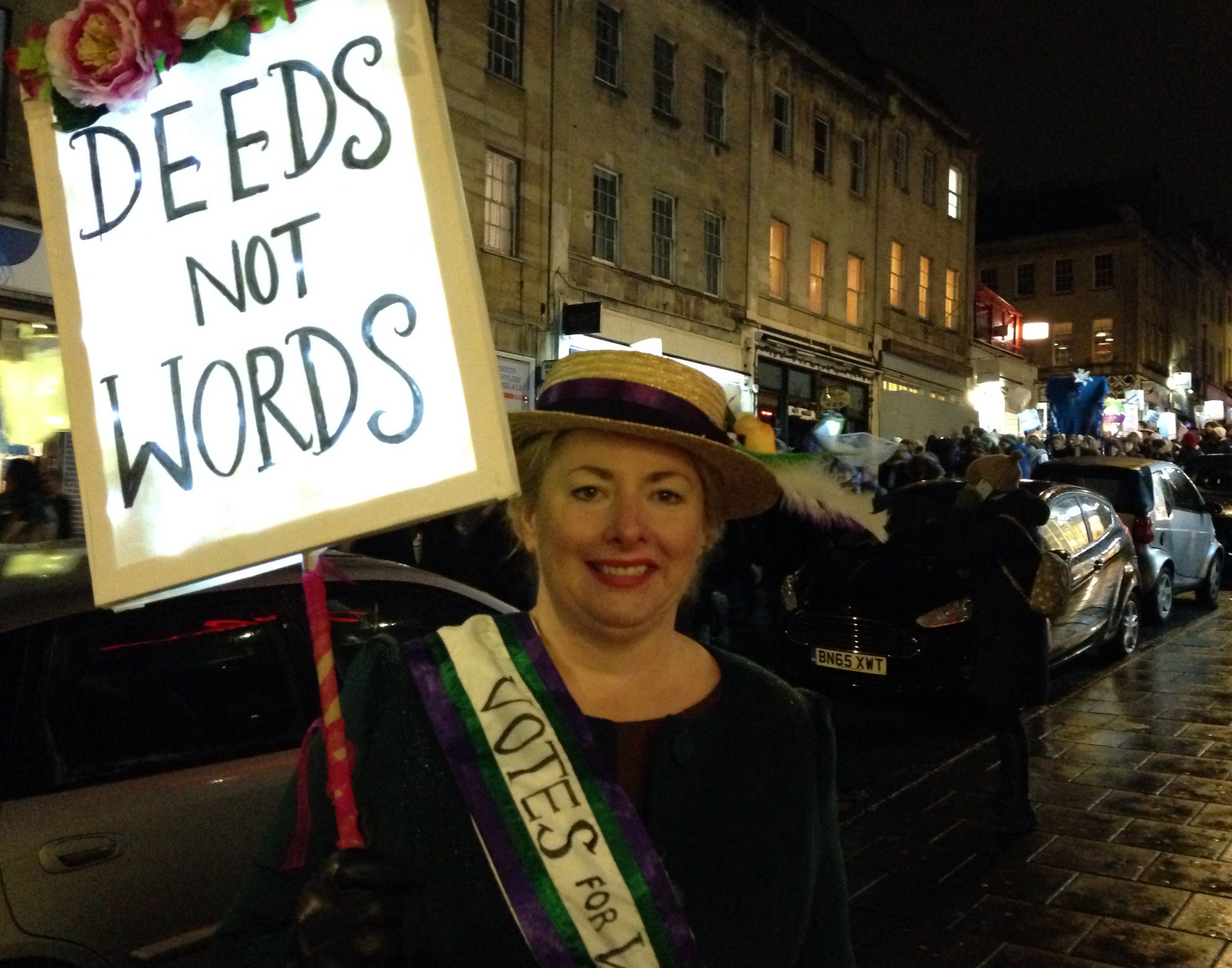 Their way lit by illuminated lanterns as the snow was falling, thousands of women and men made their way from Berkeley Square, around the Clifton Triangle and down Park Street to mark the centenary of some women getting the vote for the first time.