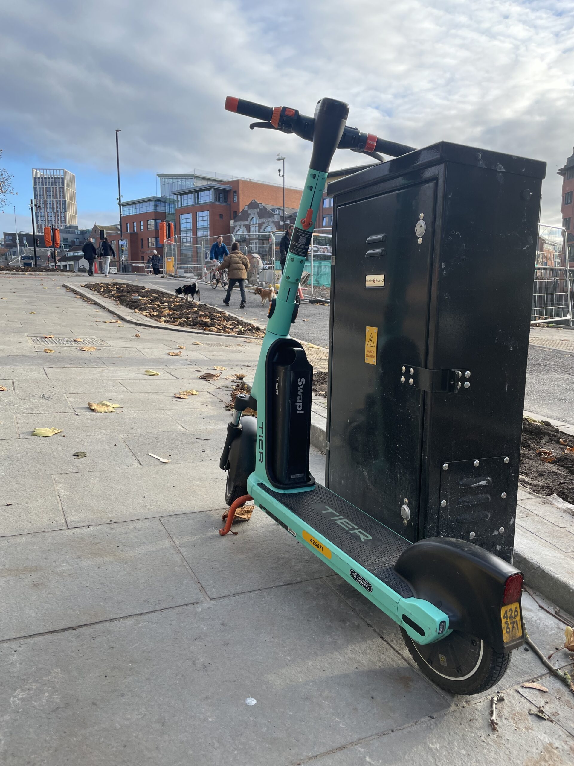 A Tier e-scooter getting ready for the new path connecting Baldwin Street and Bristol Bridge – photo: Martin Booth