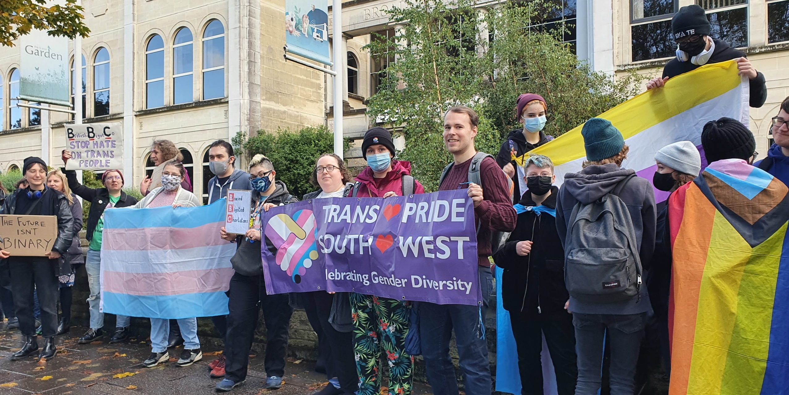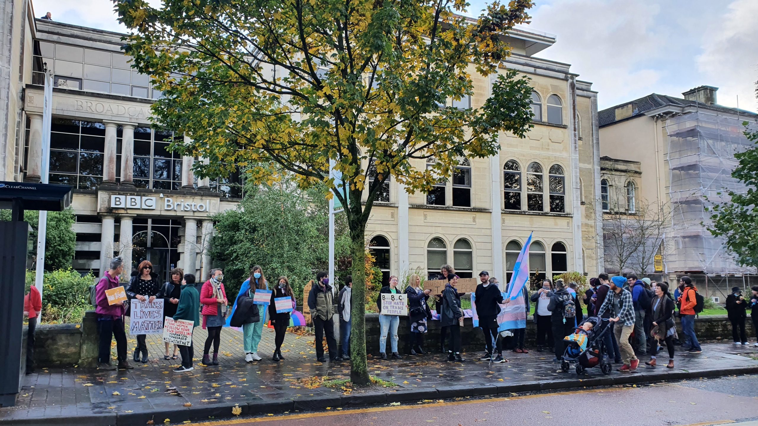But protesters on Whiteladies Road accused the broadcasting company of transphobia in its reporting, arguing trans rights are human rights and that is not a matter up for debate.