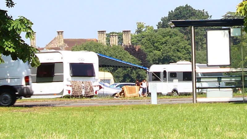 A group of French-speaking travellers have set up home on the Downs.