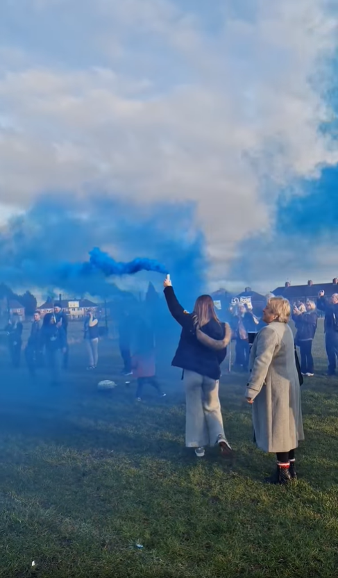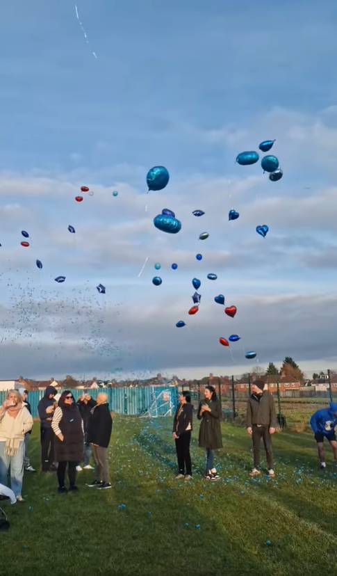 Red and blue balloons took to the sky while blue smoke flares were released to celebrate the lives of Mason and Max.