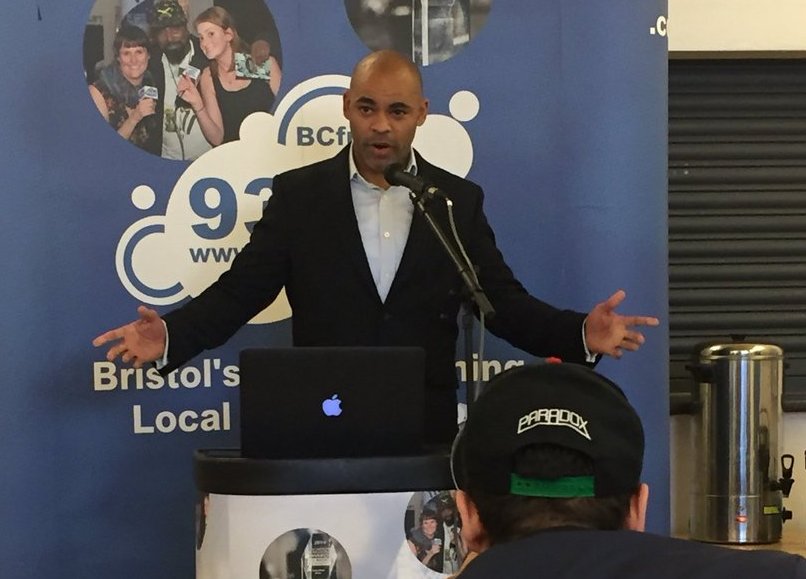 Bristol mayor Marvin Rees speaking at BCfm’s diversity in the media summit at Easton Community Centre