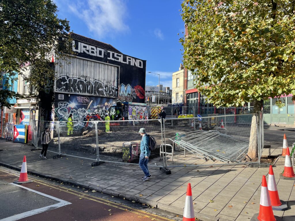 Fencing now surrounds the patch of empty land known as Turbo Island where Stokes Croft meets Jamaica Street.