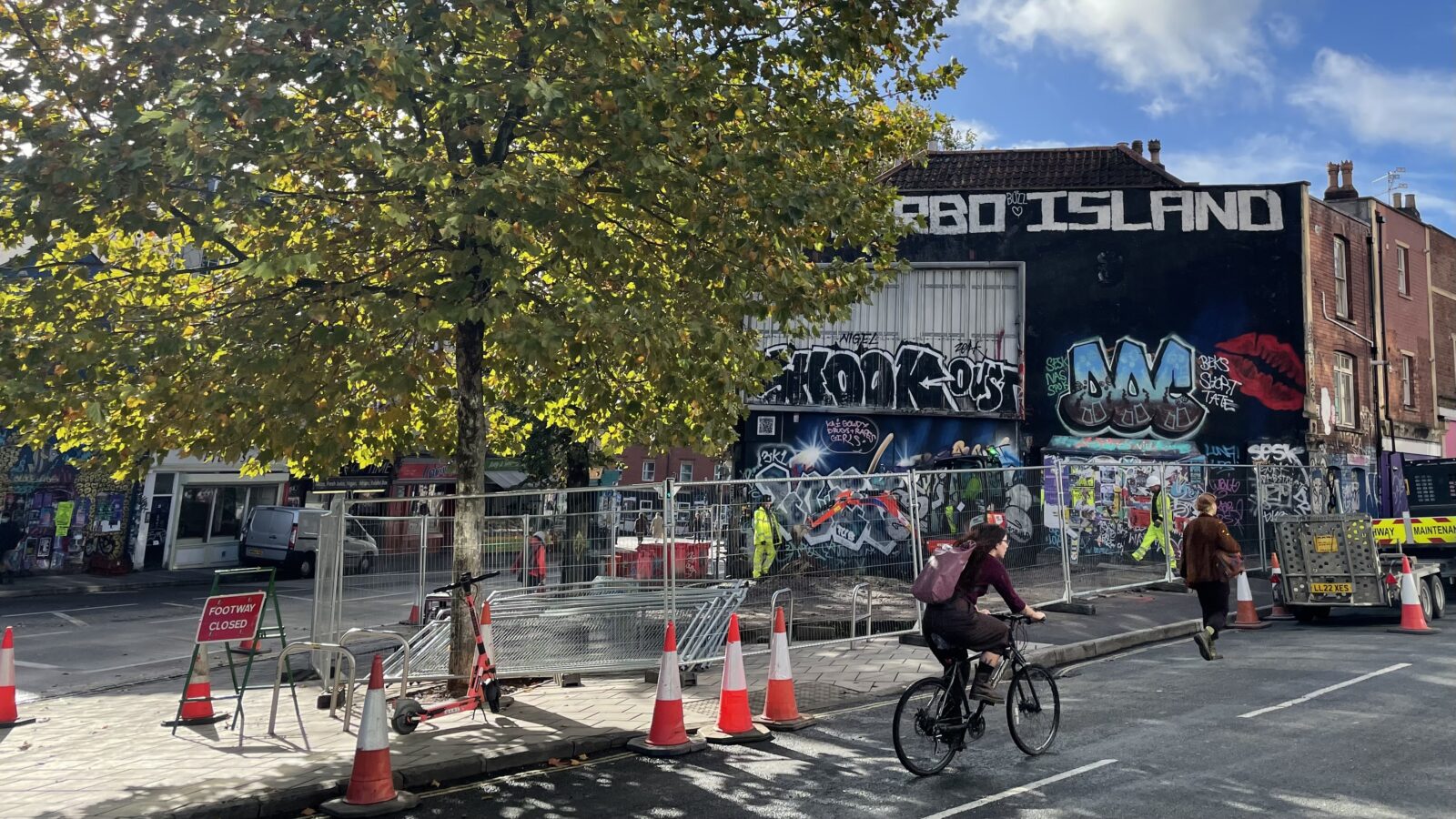 A notorious corner of Stokes Croft has been fenced off, with people already mourning its demise.