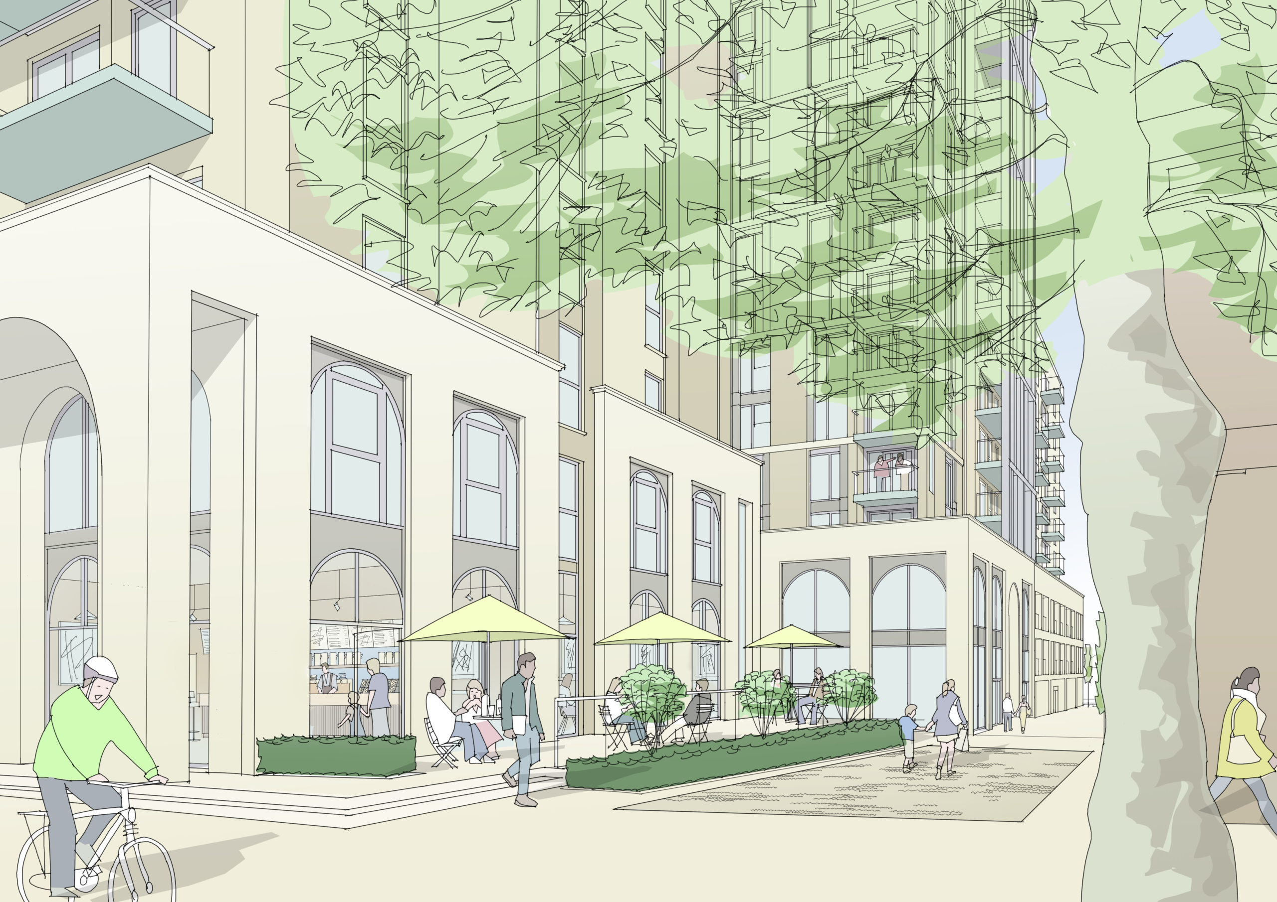 What the new Chatterton square could look like, where ground-floor commercial space would be taken up by commercial units- image: Dandara