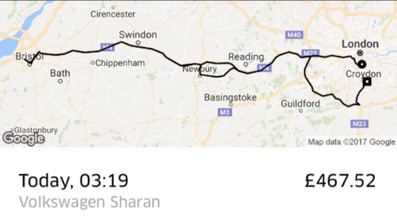 A spokesperson for Uber told Bristol 24/7: “Our systems show the rider set an address in Bristol as their destination. When they arrived and it became clear this was an error, the driver returned to London to drop them off in Croydon. This was clearly an unfortunate mistake, so as a gesture of goodwill we would like to offer the rider a refund.”