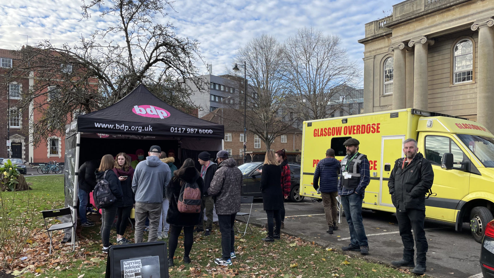 The mobile drug consumption room was parked in Brunswick Square in St Paul’s, next to the Bristol Drugs Project headquarters, on Thursday afternoon.