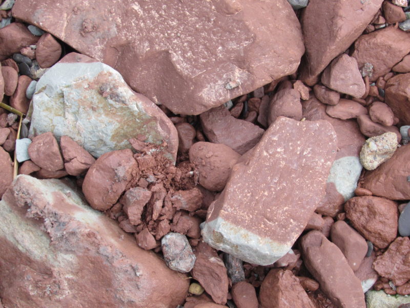 “Look for pieces of greyish rock with black lumps in them, as those lumps might be bones. Often if you look carefully you can see small teeth, the kind described in the paper, on the surface.”