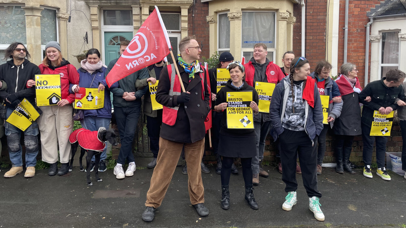 Dozens of members of a housing union turned up in east Bristol to prevent a community worker from being evicted from his home and made homeless.