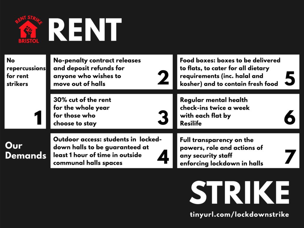University of Bristol students have made demands and called a rent strike while teaching has been affected by the coronavirus pandemic. Image courtesy of @RentStrikeBristol on Twitter