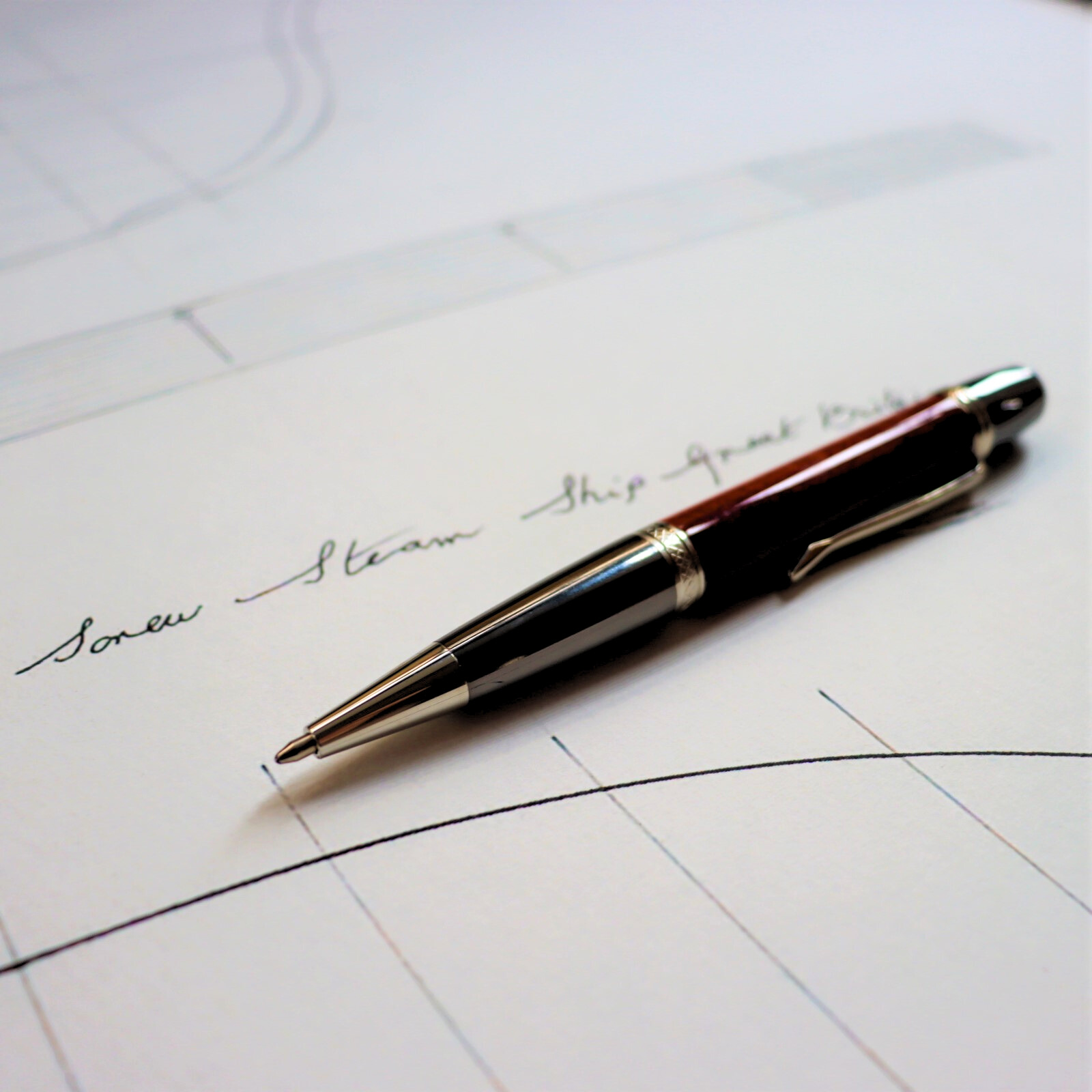 Gift a small piece of the SS Great Britain with this stunning limited edition ballpoint pen. The body of the pen has been hand-turned from Jarrah wood, removed from the ship’s decking in 2023. Presented in its own box with a certificate of authenticity, this is a quality writing instrument Brunel himself would have been proud of!