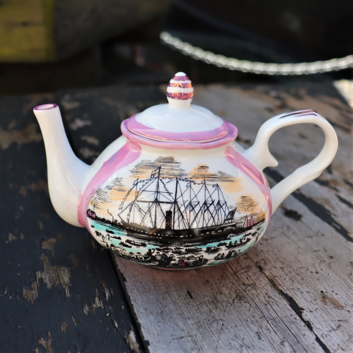 Designed in a collaboration between Stokes Croft China and the SS Great Britain, these dainty teapots combine archival images from the Illustrated London News with beautiful hand painted copper lustre. Each teapot features an image of the SS Great Britain on one side and the Clifton Suspension Bridge on the other.