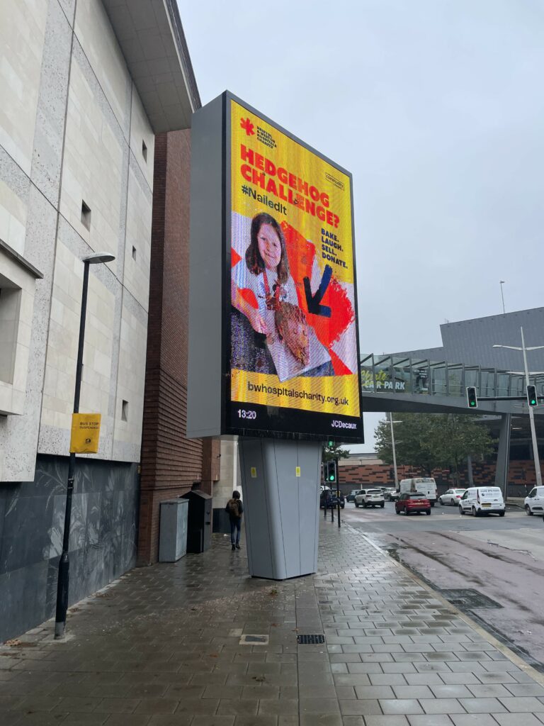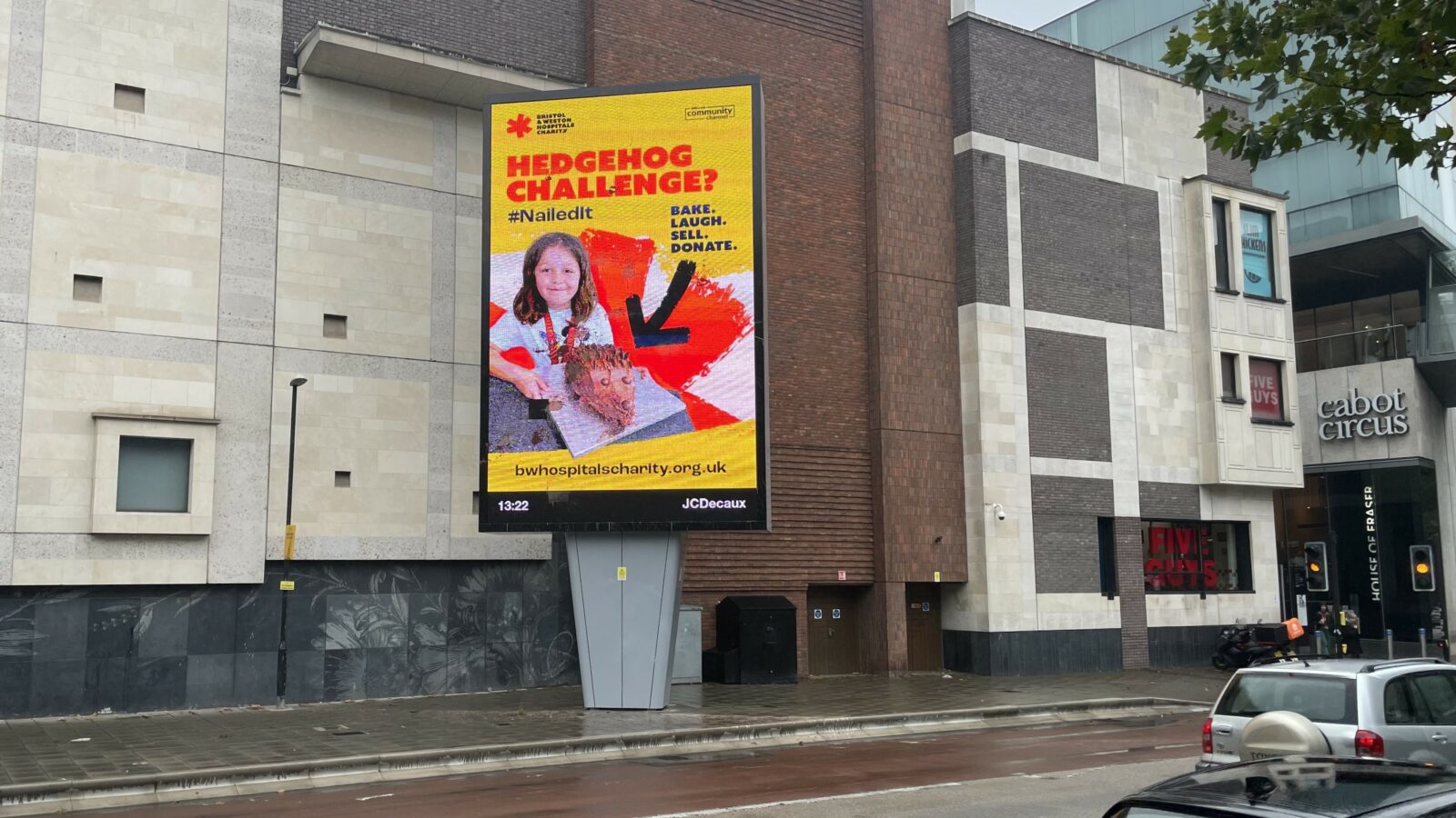 A fundraising campaign for Bristol & Weston Hospitals Charity currently appears to be the one advert on the 11-metre-high screen.
