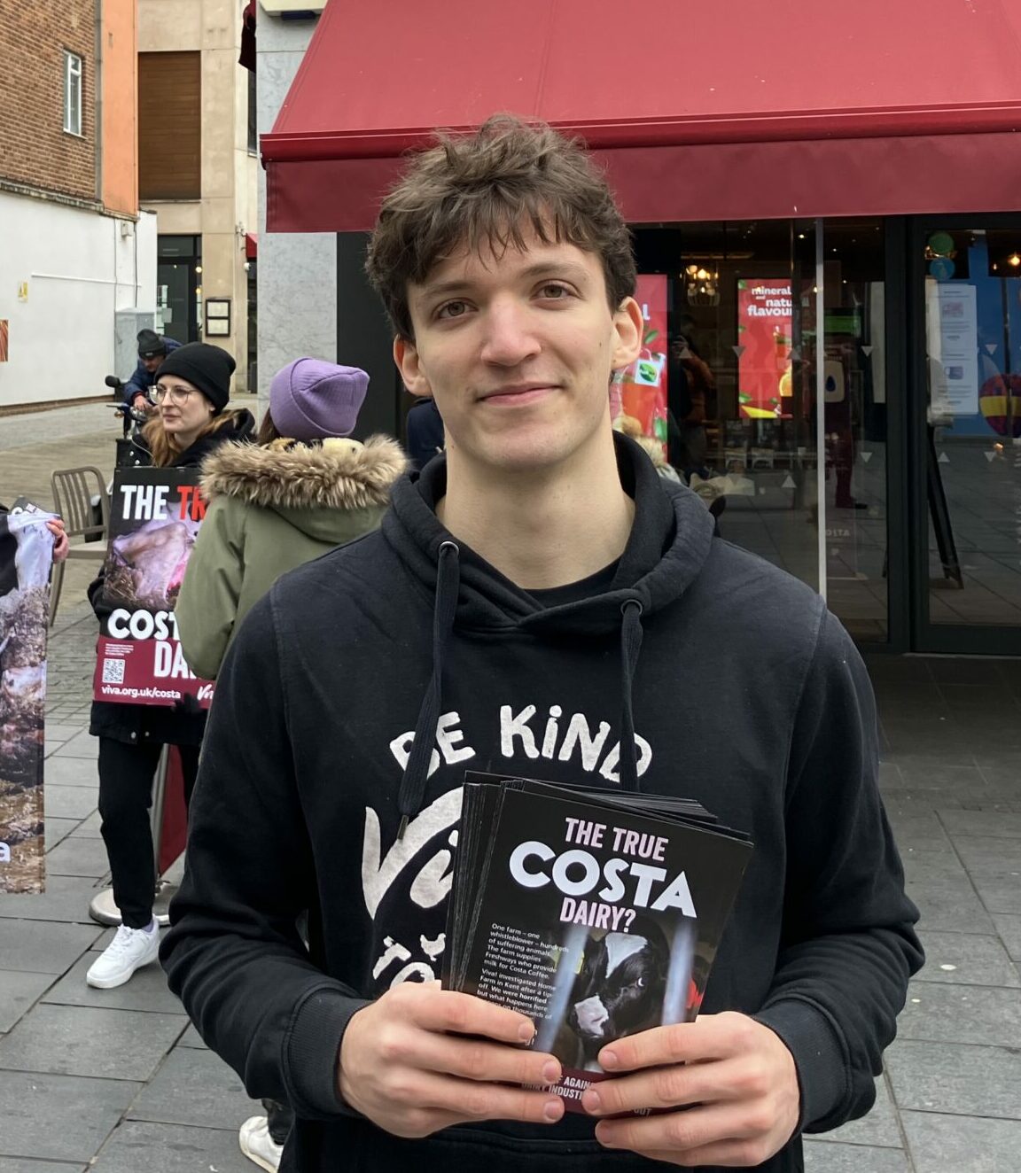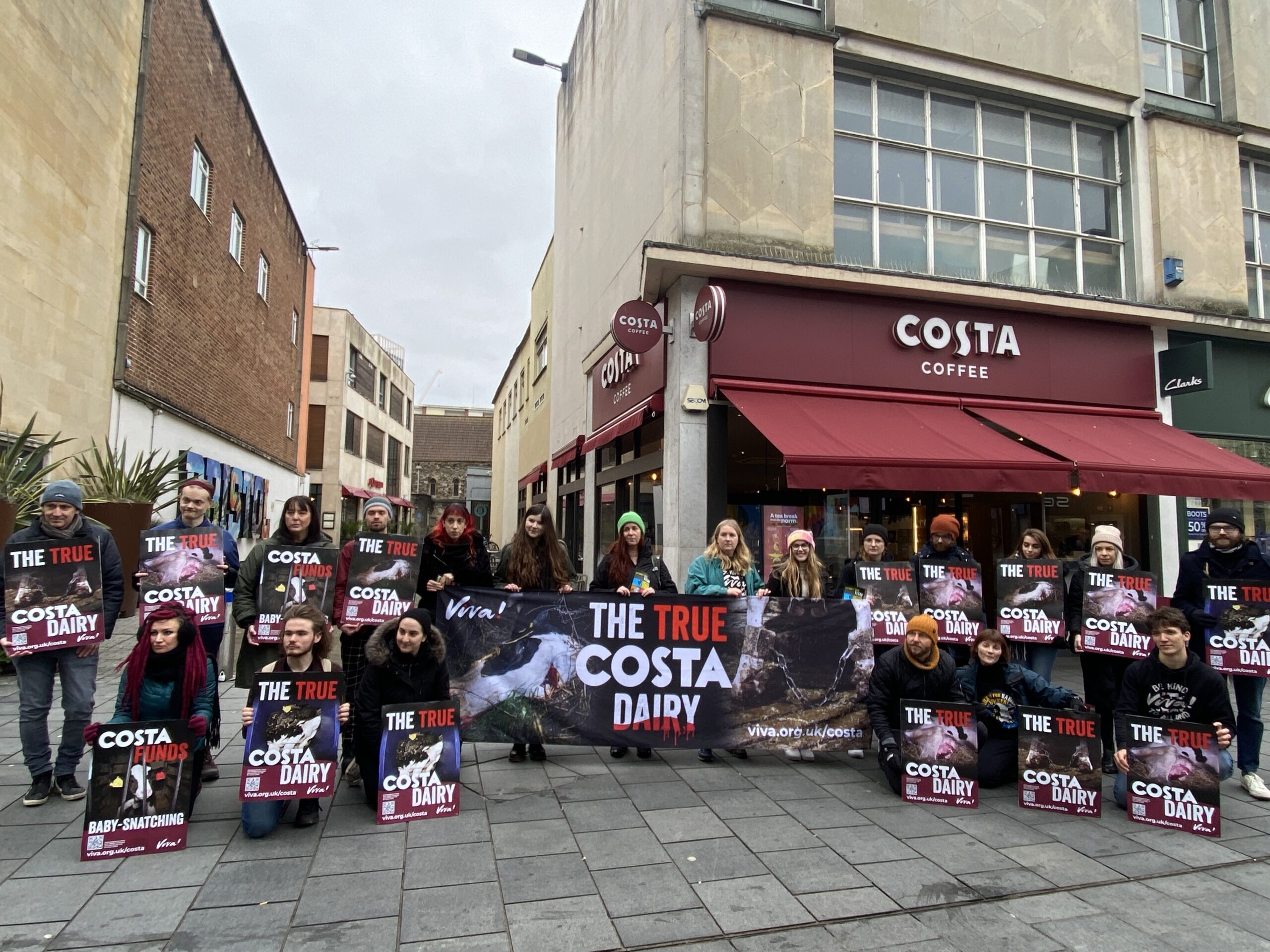 Activists from vegan charity Viva! stood outside Costa in Broadmead to reveal what they call “the true Costa dairy” following its undercover investigation into a farm in Kent.