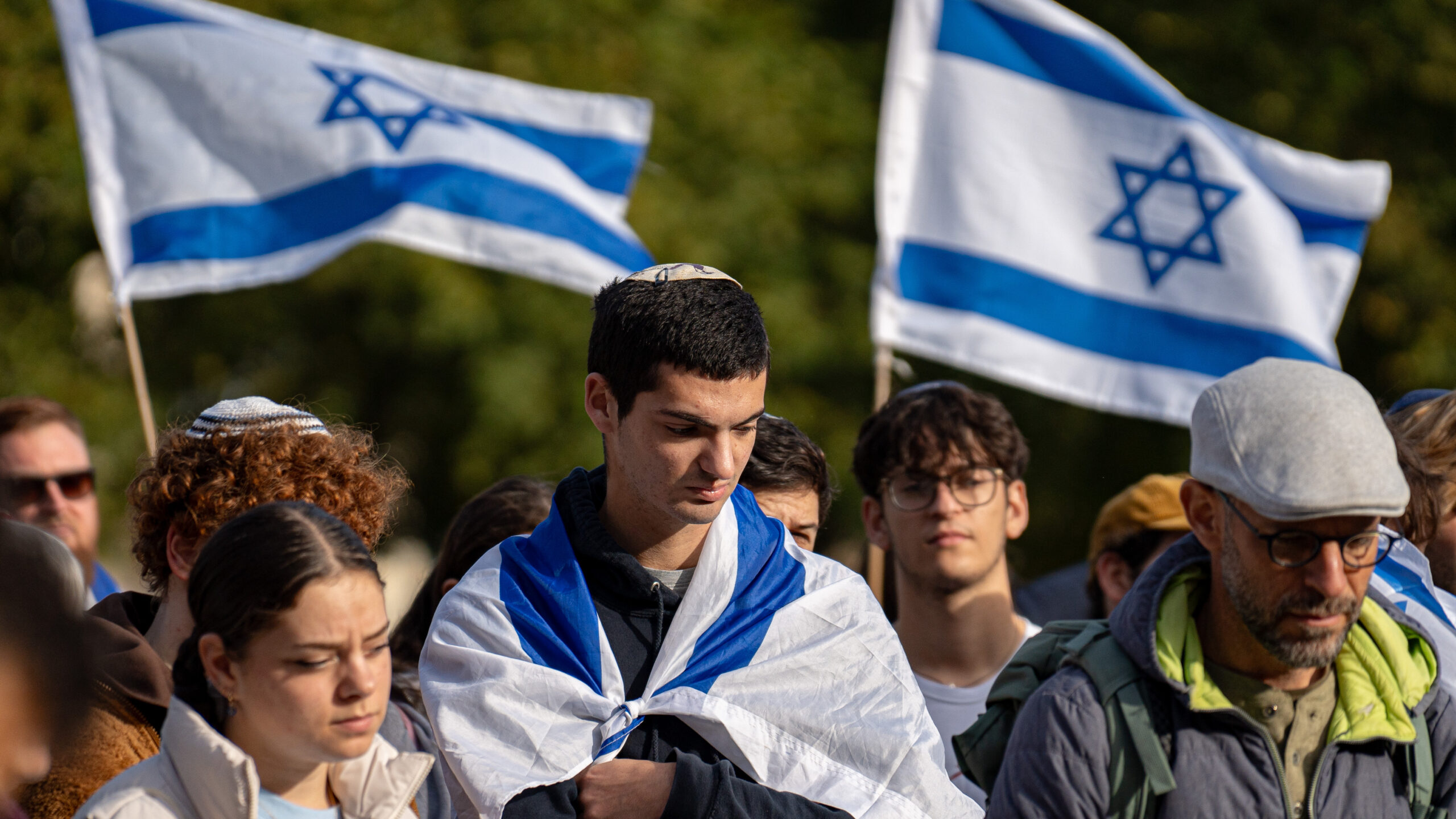 Dozens of Israel supporters gathered for the event on Sunday afternoon, at the same spot where hundreds of Palestine supporters also gathered the day before.
