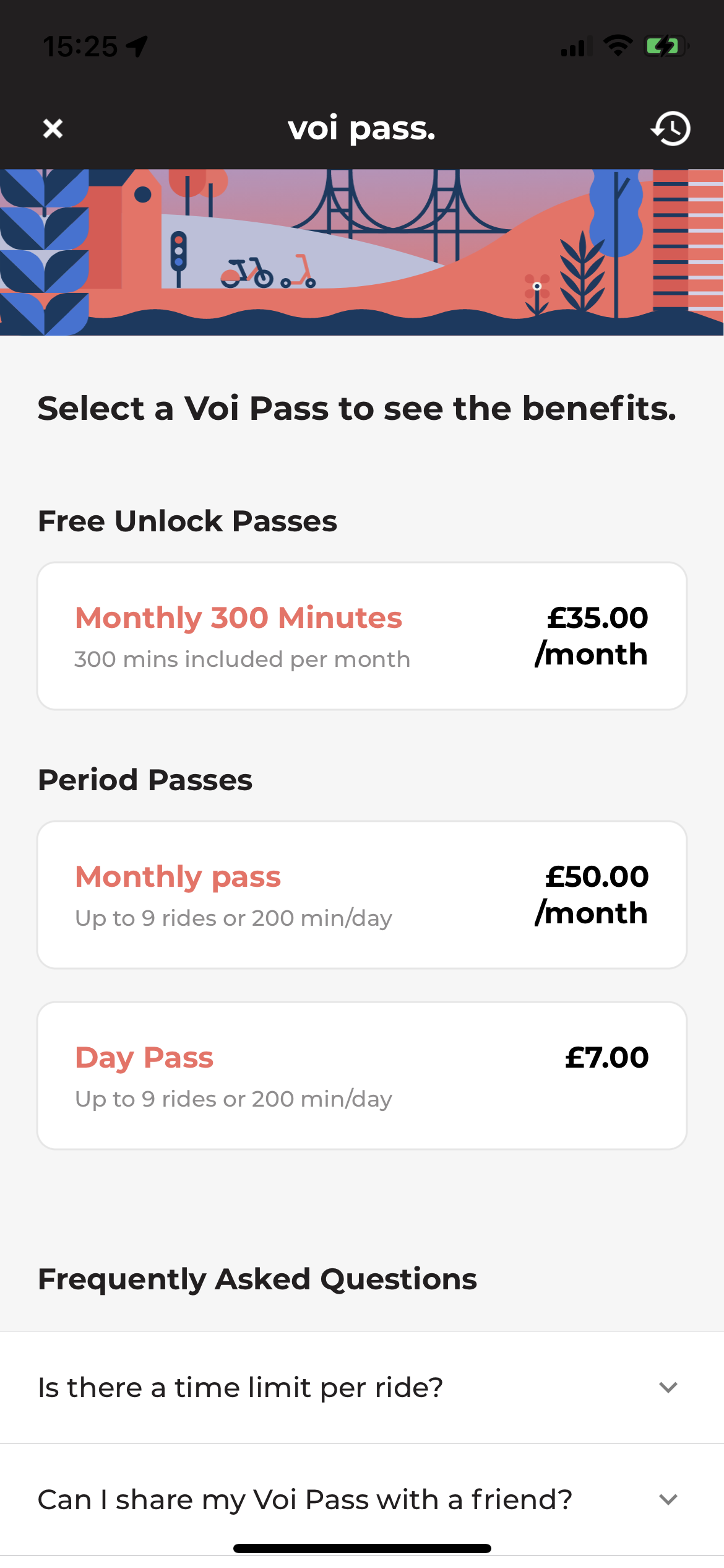 In a letter to users, the company informed them of price changes and the introduction of two different monthly pass options, with riders now able to opt for a monthly pass limited to 300 minutes for £35 per month or a monthly pass for £50 a month. The cost to ride on a casual basis is 16p per minute, plus an unlock fee of 99p.