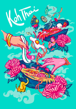 Have you come across Marta’s vibrant artwork showcasing the mouthwatering delights of Koh Thai? These colourful pieces can be spotted throughout the city!