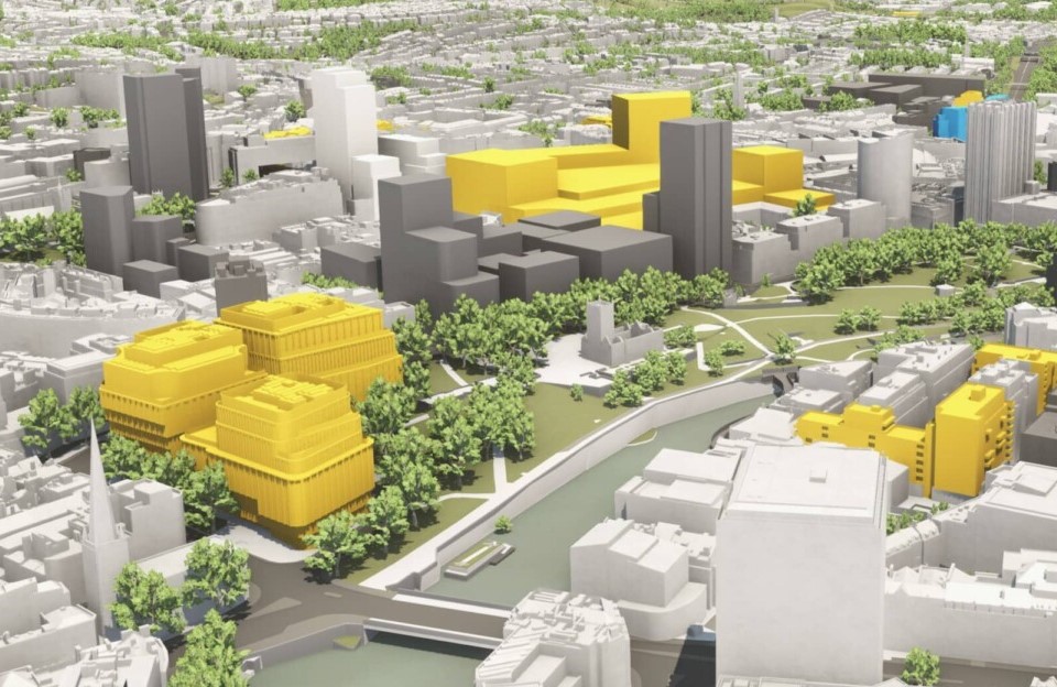 Developers have placed their proposals for the Debenhams site alongside some consented and some proposed buildings in the city centre – image: VuCity