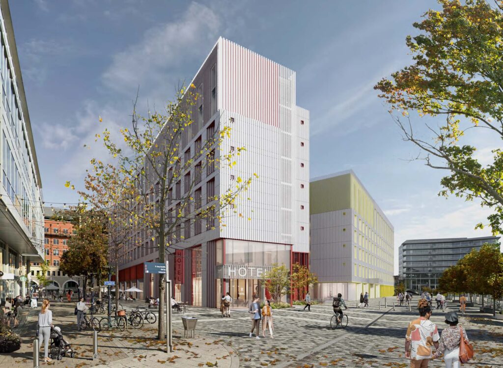 “The proposed hotel and aparthotel buildings are ground-plus-seven and six storeys respectively, and the Build-to-Rent building would be ground-plus-ten storeys, as it sits further away from more sensitive views.