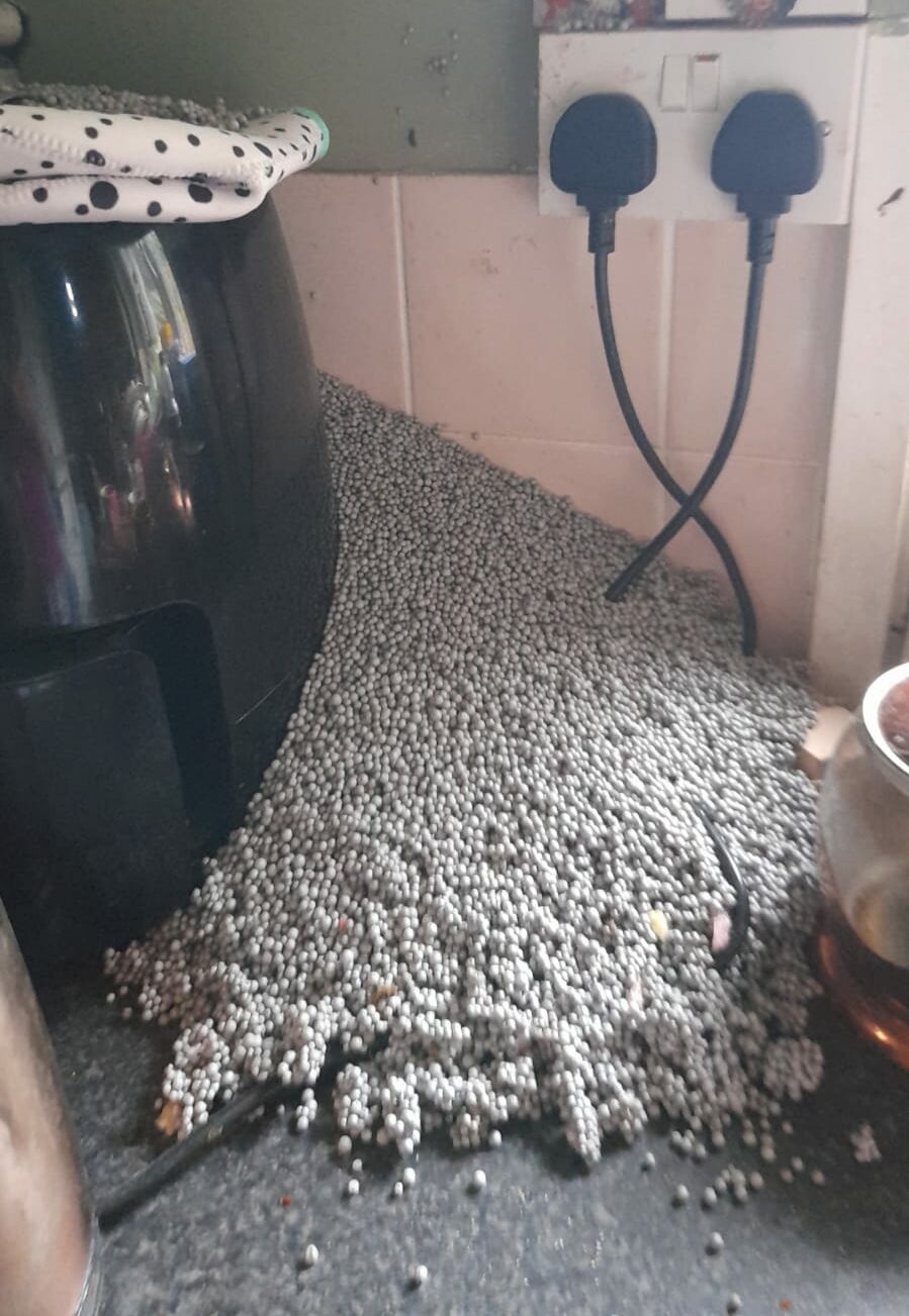 Woman clears ‘carrier bag’ worth of polystyrene balls from flat every day