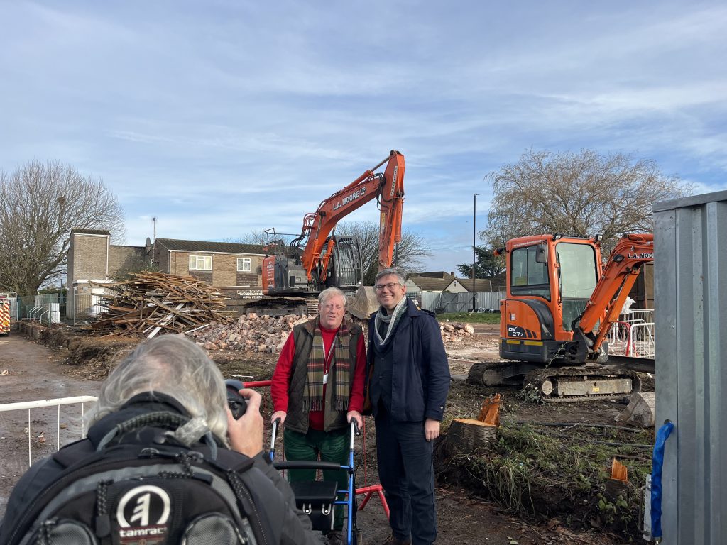 Councillors Richard Eddy (left) and Barry Parsons (right) smile for the cameras at the Cameron Centre site