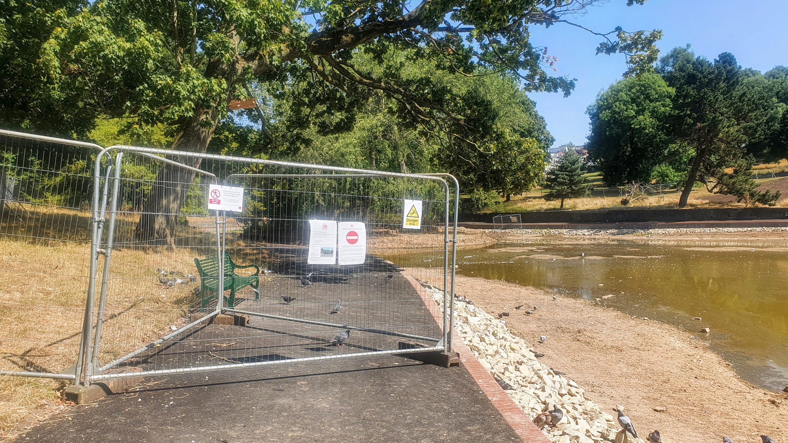 Work has been completed but fencing around the lake in St George Park remains – photo: Ellie Pipe