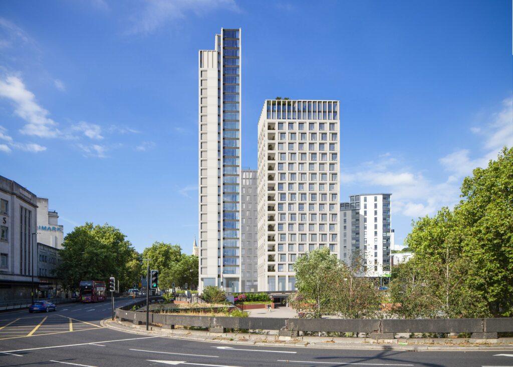 Plans for St James Square on the site of the current Premier Inn include a 28-storey purpose-built student accommodation tower – image: Olympian Homes