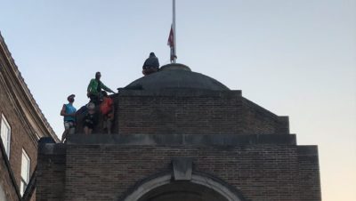 XR protester celebrates 21st birthday on roof of City Hall