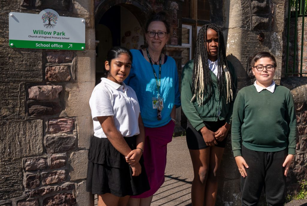 Some of the Year 6 class at Willow Park Primary School with their teacher Linnea Strandh – photo: Willow Park