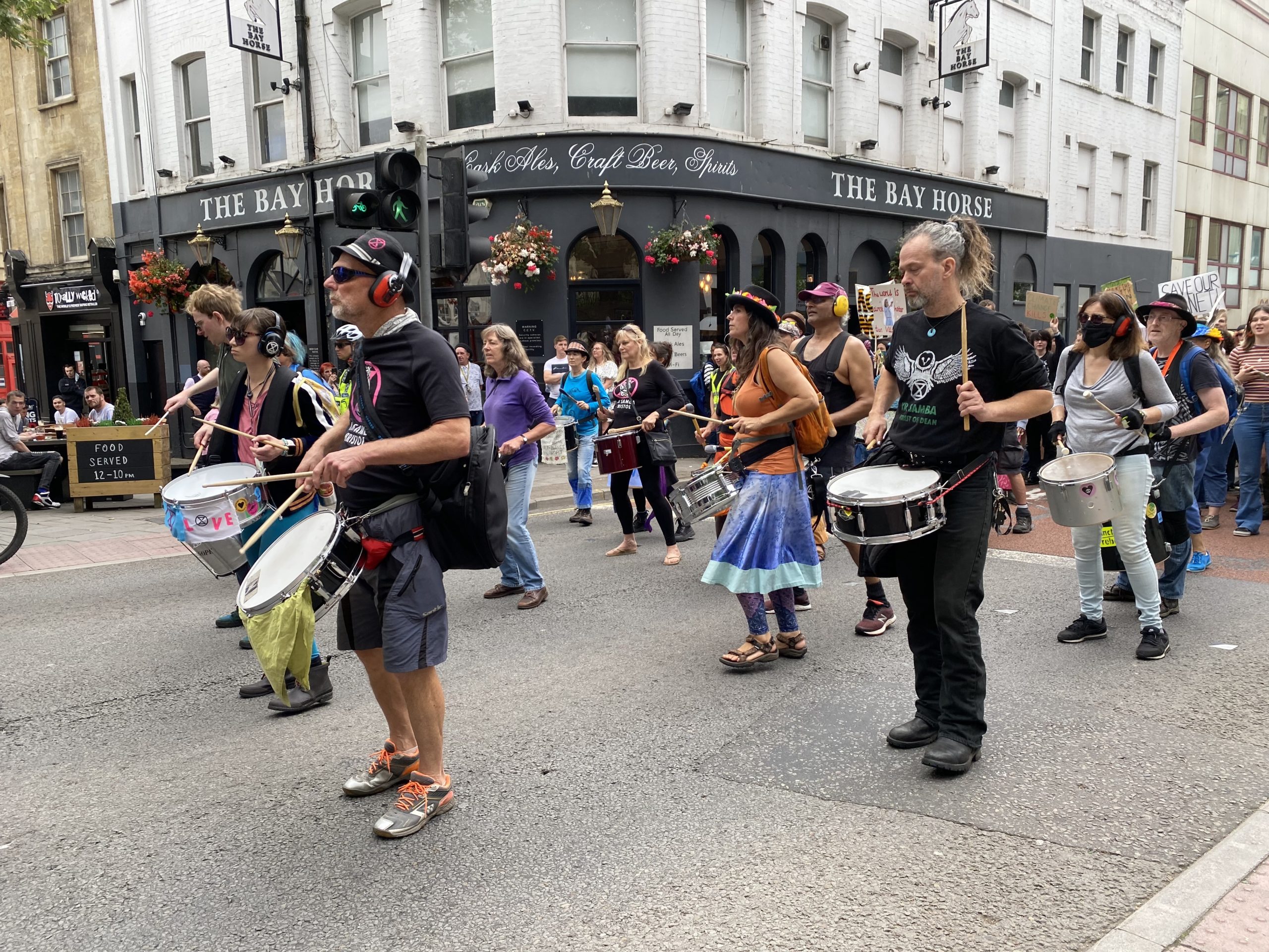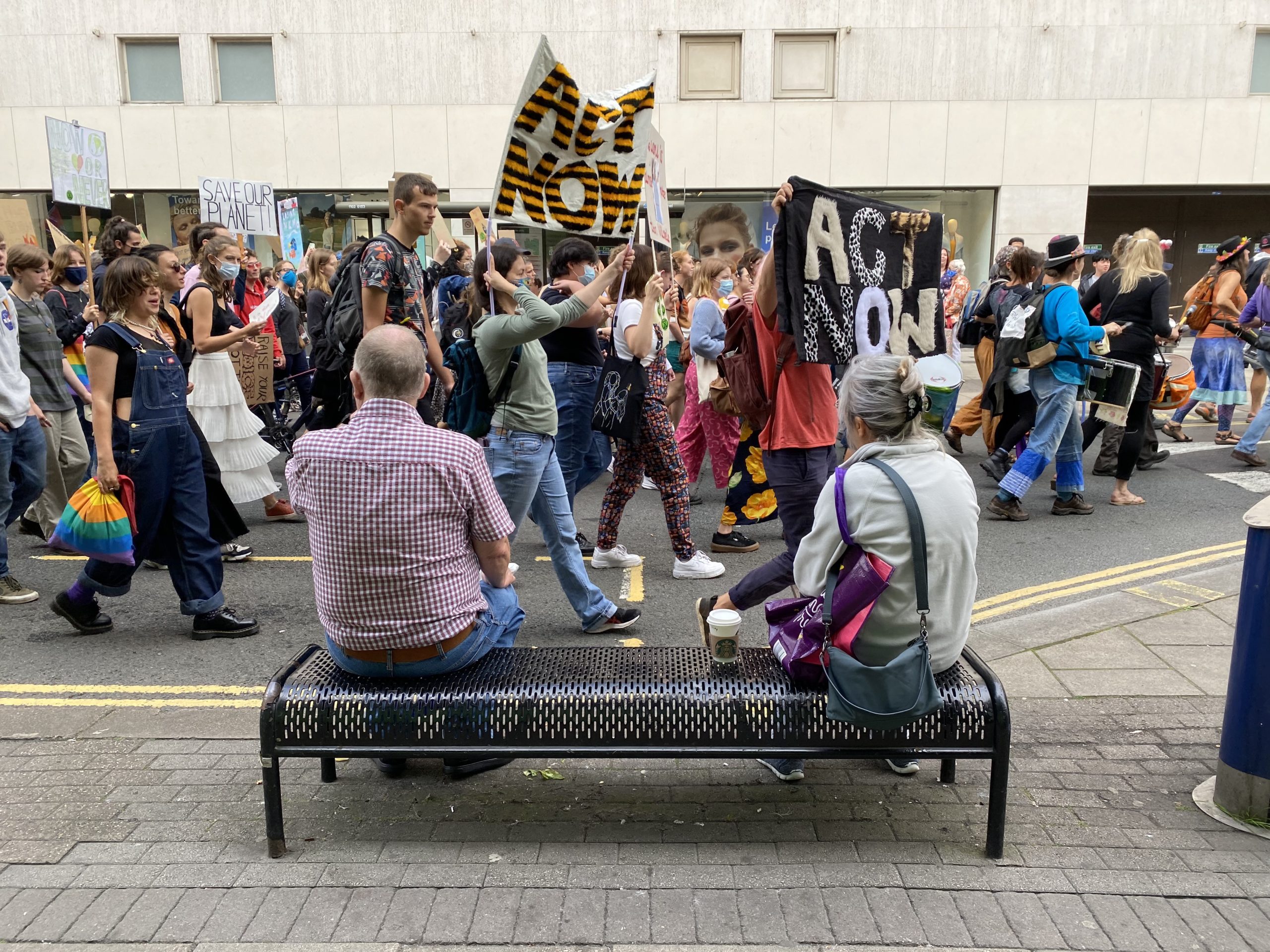 Youth strikers followed their usual route around the city centre, walking from College Green towards Broadmead, and then up past Castle Park, with a combination of samba band drumming and chanting filling the air.
