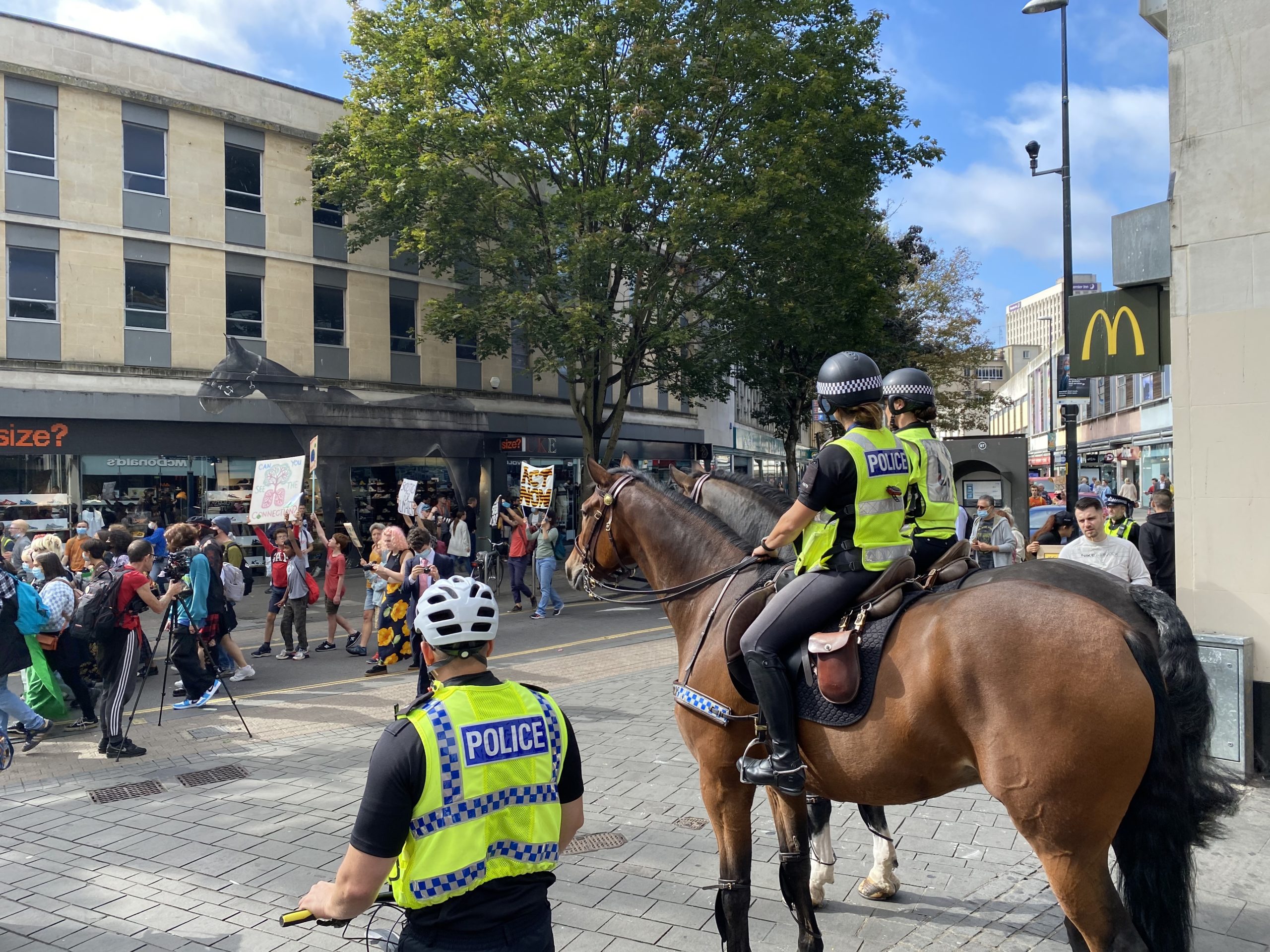 After speeches, protesters marched from College Green over to Broadmead – photo: Billy Stockwell