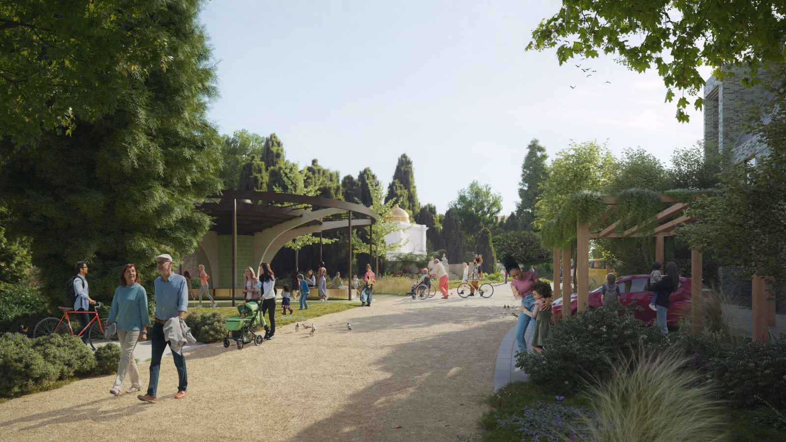 Planning consent for the former zoo site was granted in April 2023 and would see the creation of 196 new homes, a new public park, a cafe, playground and conservation hub – image: Perkins & Will