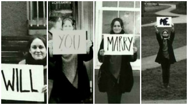 At the stroke of midday on what Twitter is now calling #leapday, she showed her boyfriend Paul five black and white photographs of her standing at various Bristol locations that are significant to the pair.