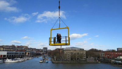 We’ve been thinking for a while about doing something experiential in Bristol. We’d looked at a couple of rooftops, including the M Shed, and also looked at the option of having something floating in the harbour, but nothing was coming together. But then one day, we were in our meeting room and looking out of the window [from their offices next to Prince’s Street Bridge]. We saw the cranes and it was obvious! It’s taken around three years to get to this point – getting permission from the council and planning everything. Now it’s happening, it’s really exciting to be taking over a real Bristol landmark.